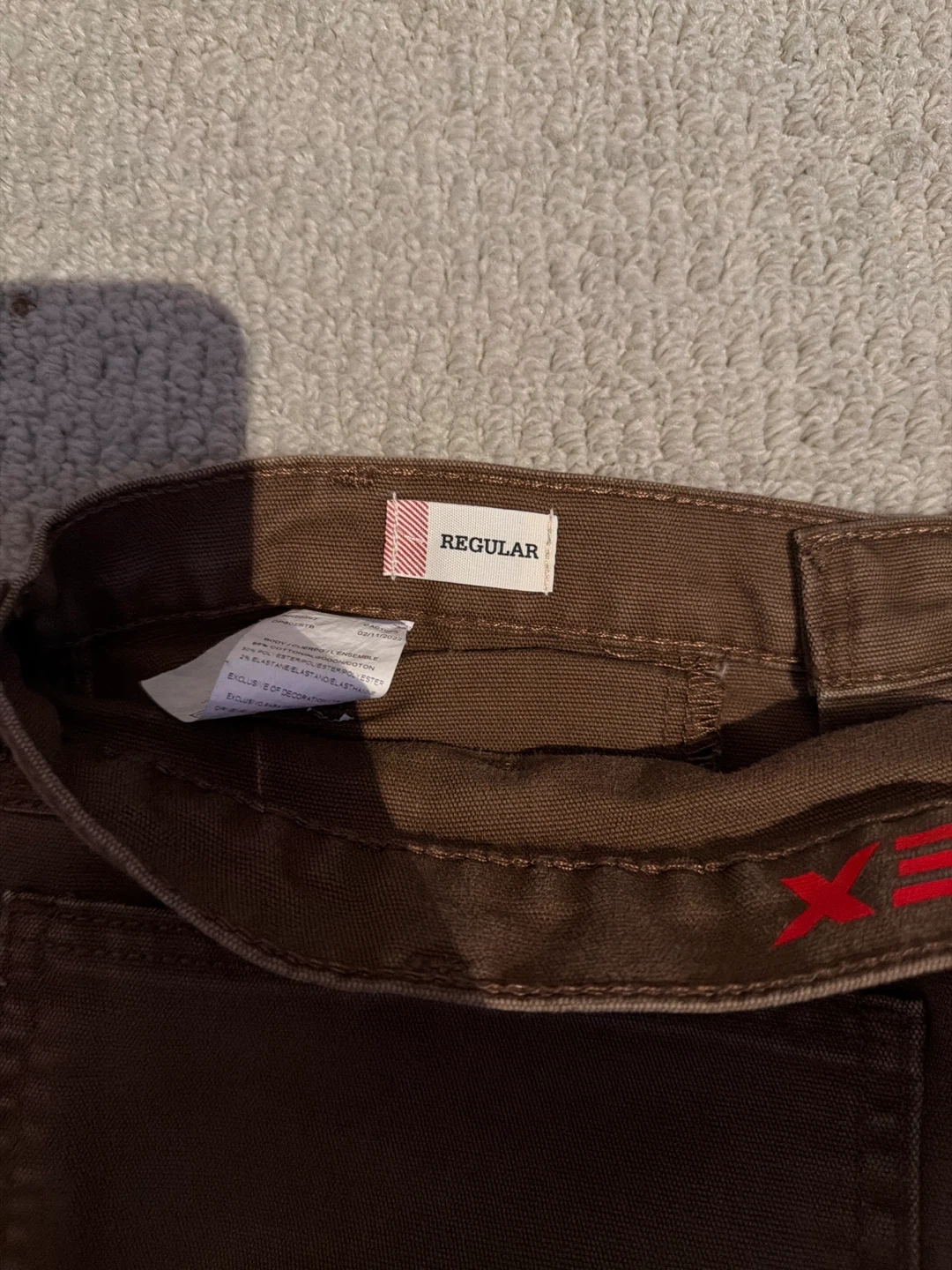 Dickies FLEX work pants in a relaxed fit. These brown carpenter pants are made with durable fabric. They feature a straight leg and utility pockets. Bought from Boathouse couple of years ago