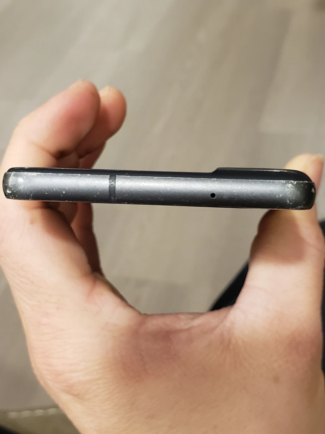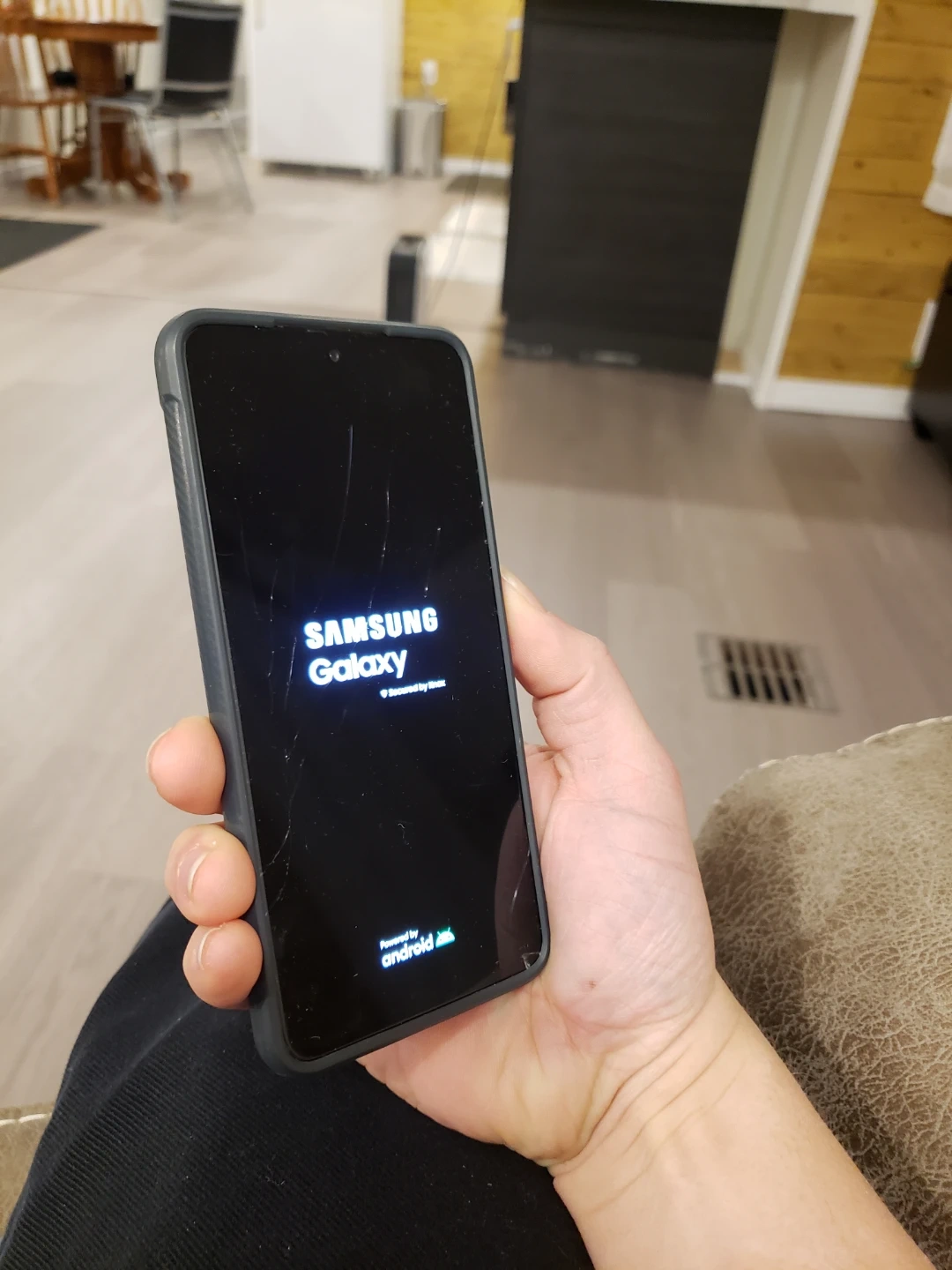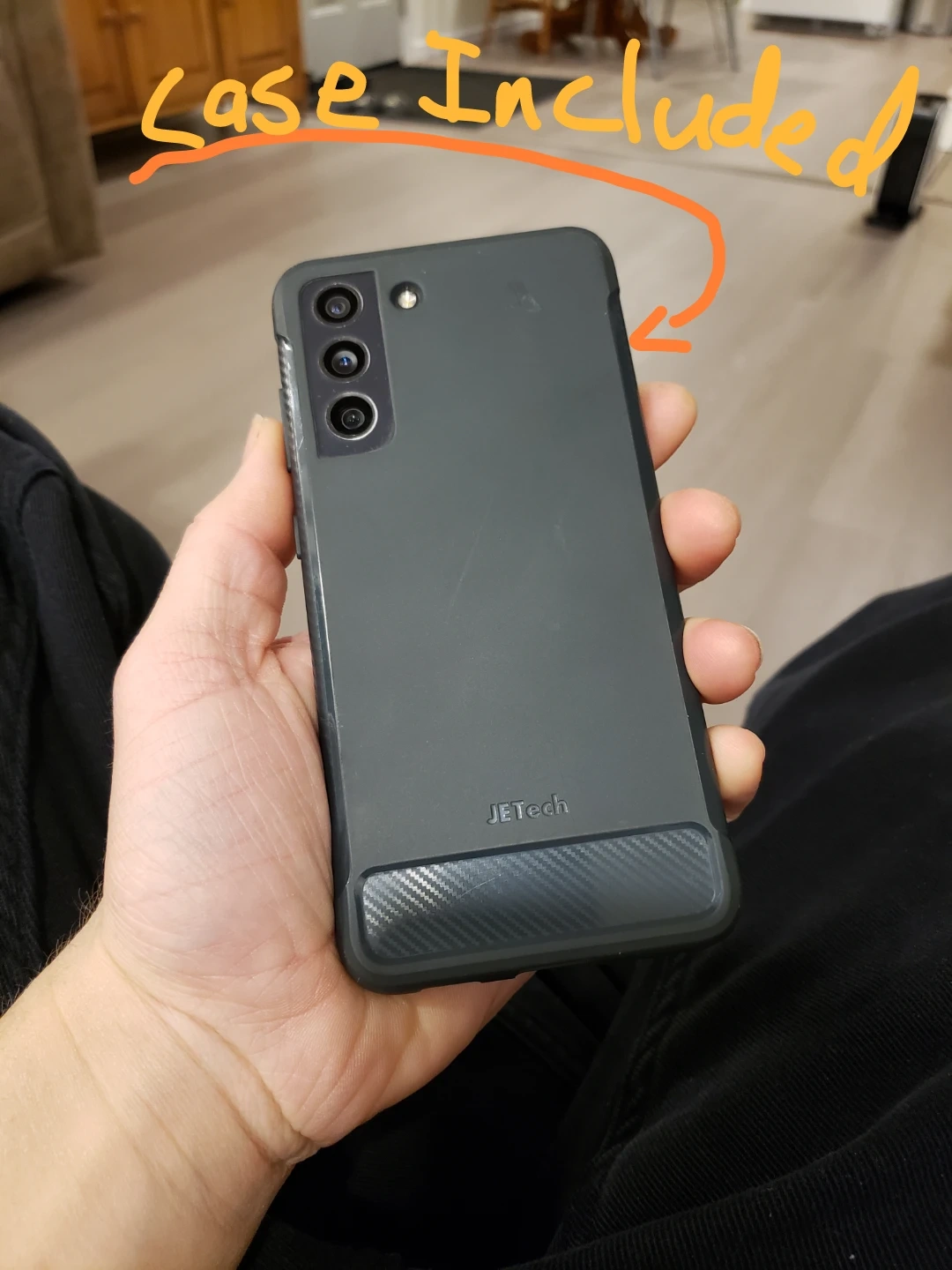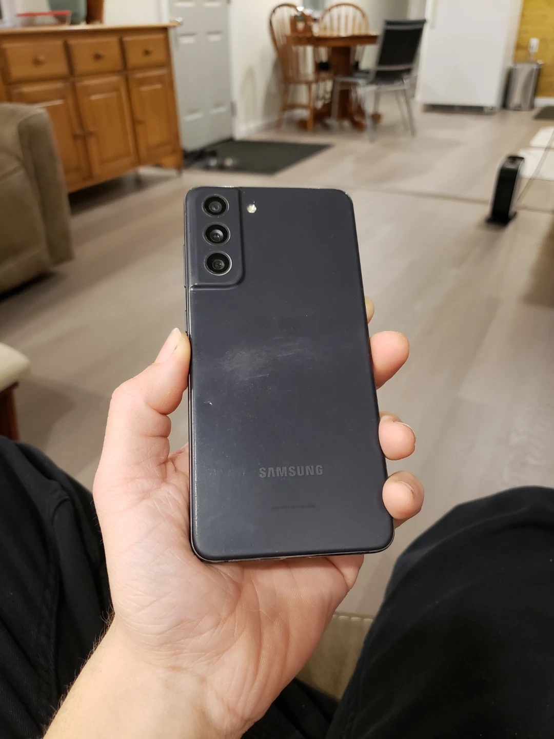 This is a Samsung Galaxy S21 fe smartphone. It has a triple-lens camera system on the back. The screen is cracked but it powers on. As far as I know everything still works fine, a slight glitch when using 'pro video' mode and the speakers aren't the best, but that's an easy fix. Good for a first phone if you want something that works for cheap.