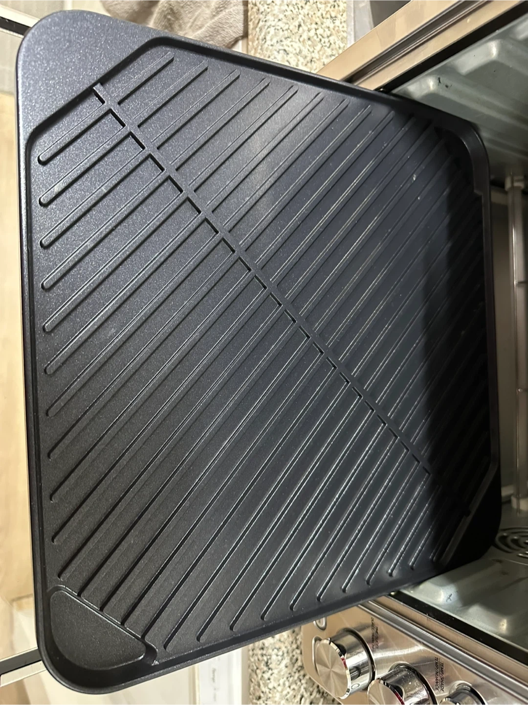 This Gourmia digital air fryer oven + grill is a versatile kitchen appliance. It comes with a reversible grill rack and a baking tray. It offers 16 cooking functions for various meal preparations.