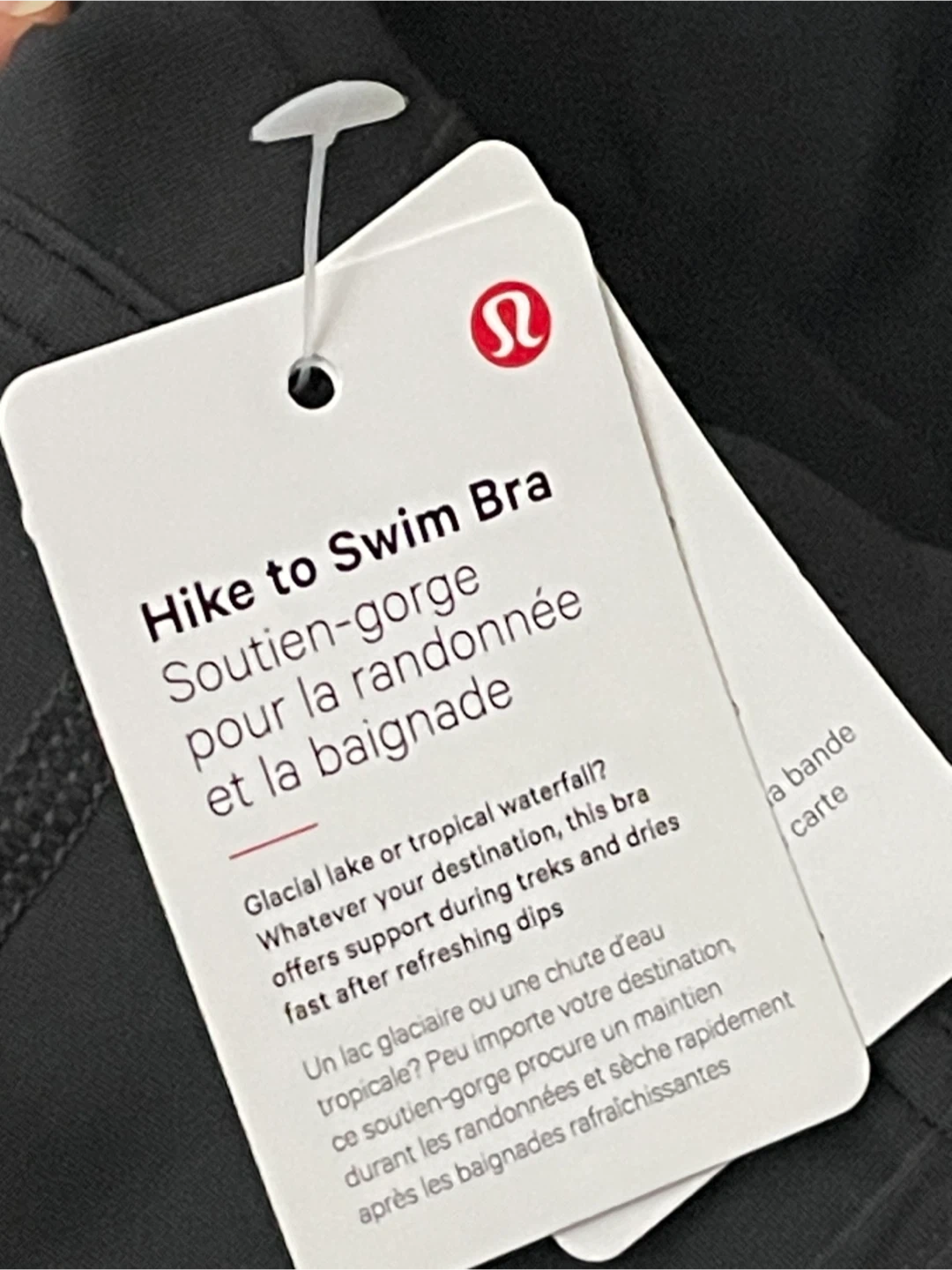 This is a Lululemon Hike to Swim Bra. It's designed for versatility, offering support during treks and comfort after refreshing dips. It's made with quick-drying fabric.