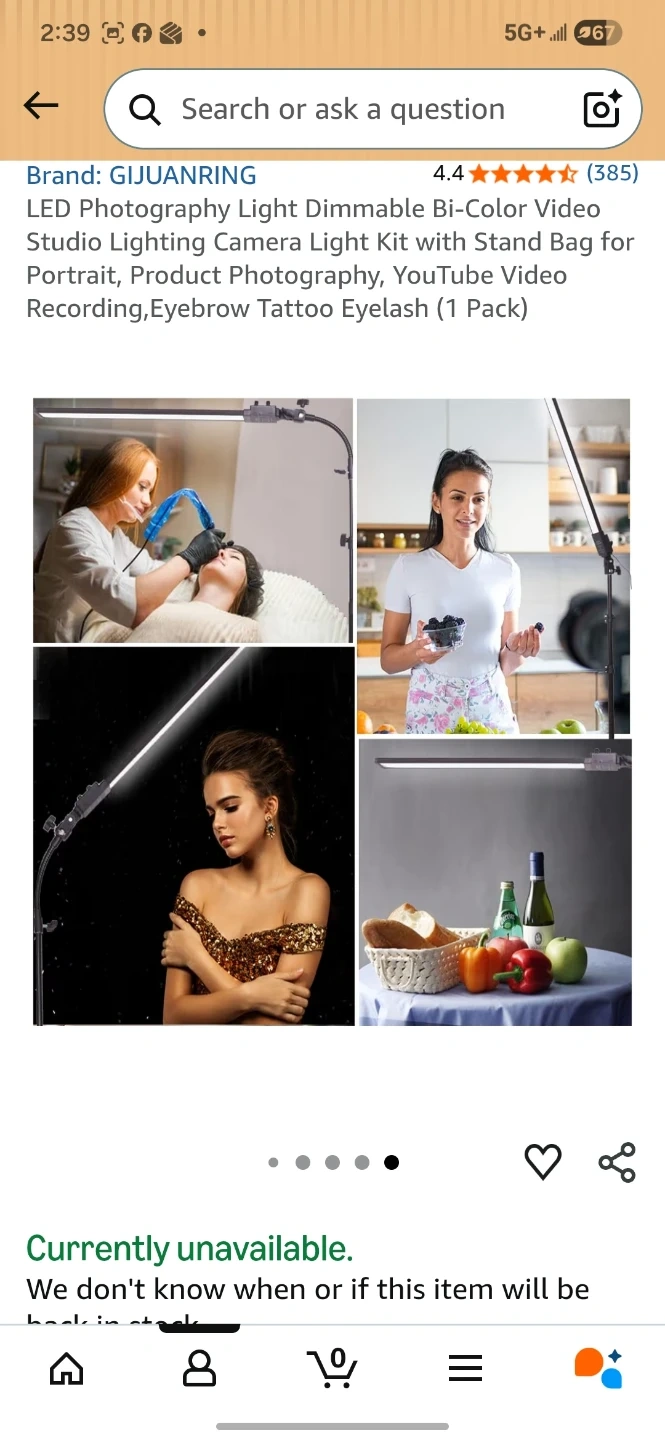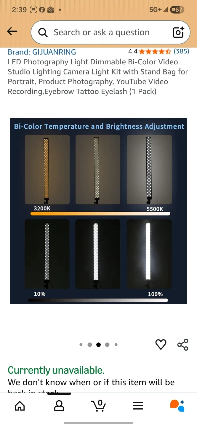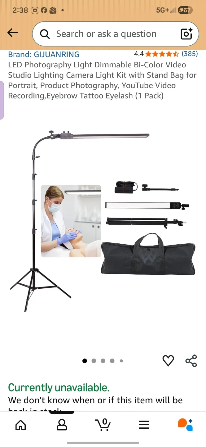 This is a photography light kit. It's bi-color and dimmable with adjustable brightness and colour temperature from 3200K to 5500K. The kit includes a light stand and a carrying bag. Power output is 36W and it has a CRI of >96.
