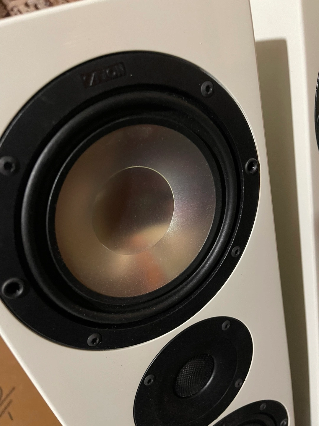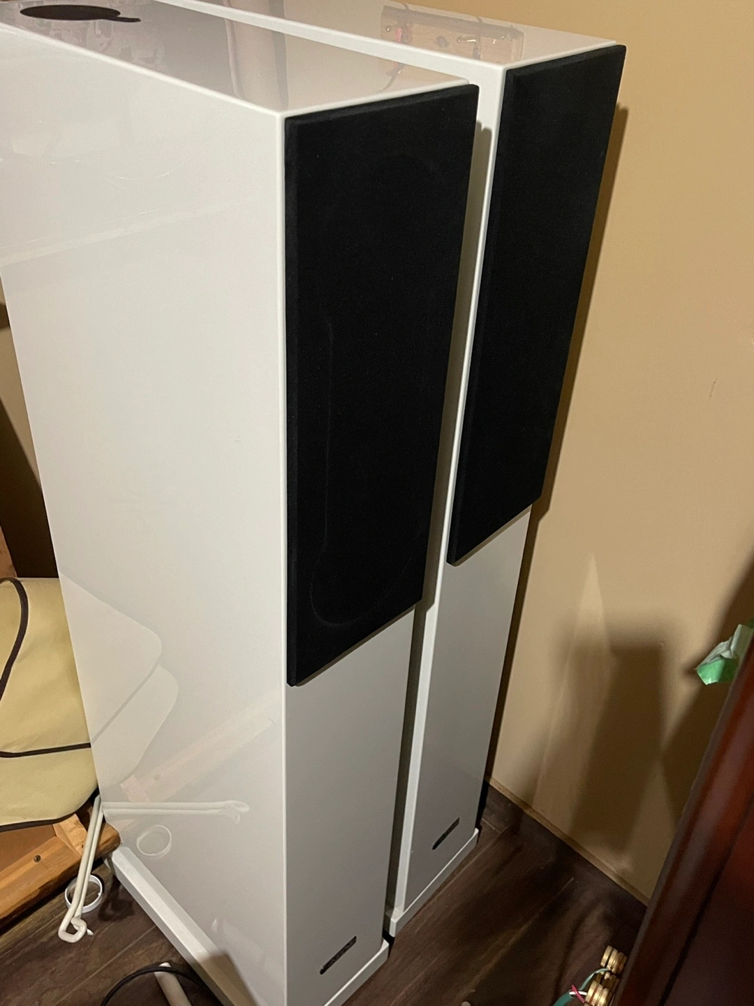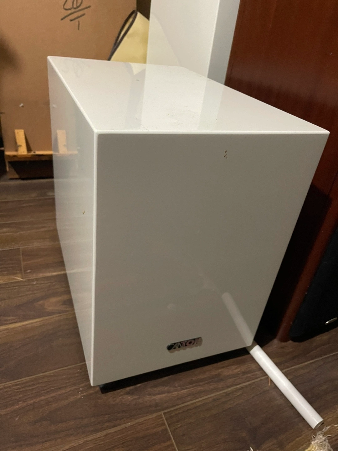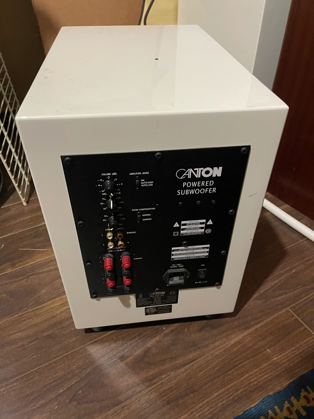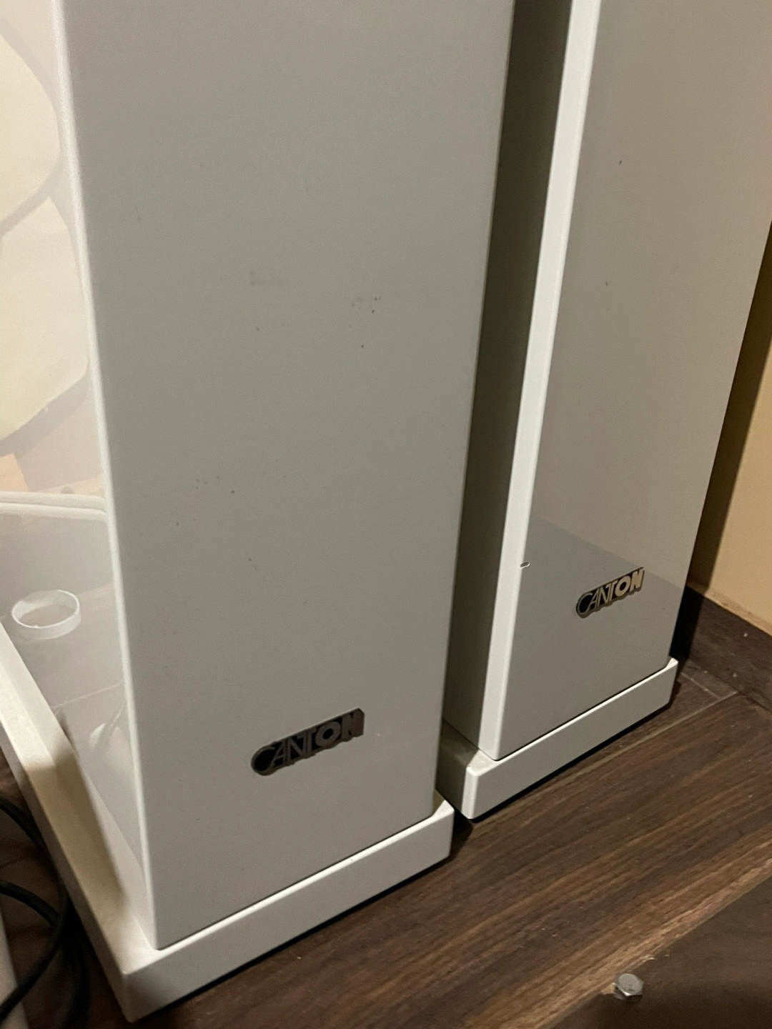 Pair of white Canton Reference 800.2 floorstanding speakers. Includes matching Canton subwoofer. Great sound quality. Minor cosmetic imperfections.