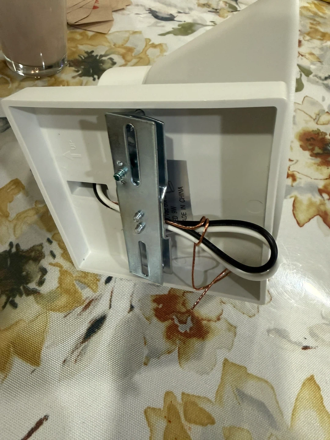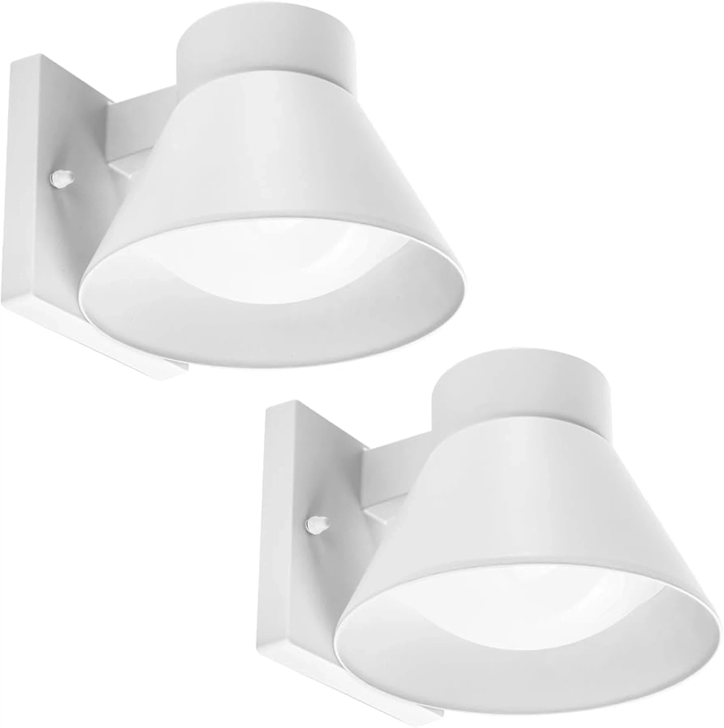 This brand new white outdoor wall light fixture is built with an aluminum frame for anti-rust and anti-corrosion properties. It features a built-in LED bulb that's energy saving and doesn't need replacing. It's rainproof, snowproof, and windproof, making it suitable for various weather conditions. The fixture measures 6.97 inches in width, 4.72 inches in height, and extends 6.22 inches from the wall.