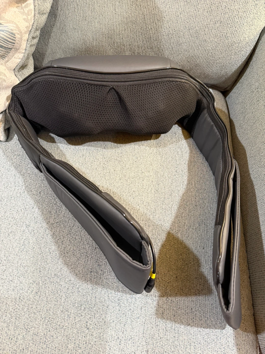 This electric massager targets your neck and shoulders. It features heat and multiple massage nodes for deep tissue relief. The ergonomic design wraps around your neck and shoulders for comfortable use.