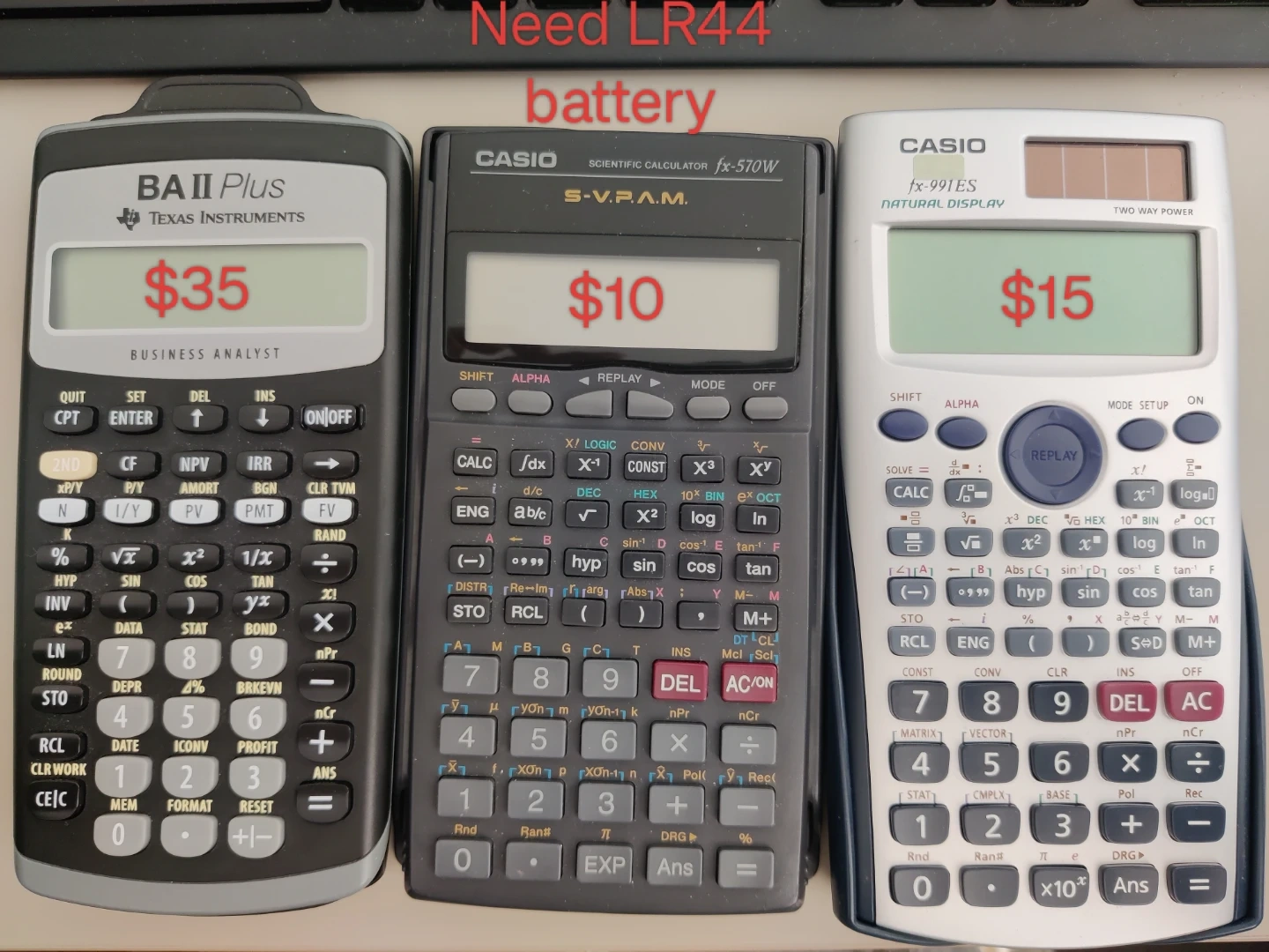 Buy & SellFinancial Calculator and Scientific CalculatorFinancial Calculator and Scientific Calculator$10All in working condition, price shown in picture for each.ConditionLike newBrandCasioWHERE TO MEETDowntown VancouverView MapSELLERLylaDowntown1000+211 reviews0 chats·0 favorites·1 viewsSEND CHAT TO SELLERHi Lyla! I’m interested in your listing.Hi Lyla! I’m interested in your listing.Get the Karrot app to chatSign In to chat