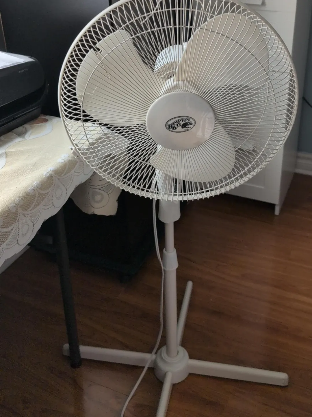 Hampton Bay White Pedestal Fan picked up as