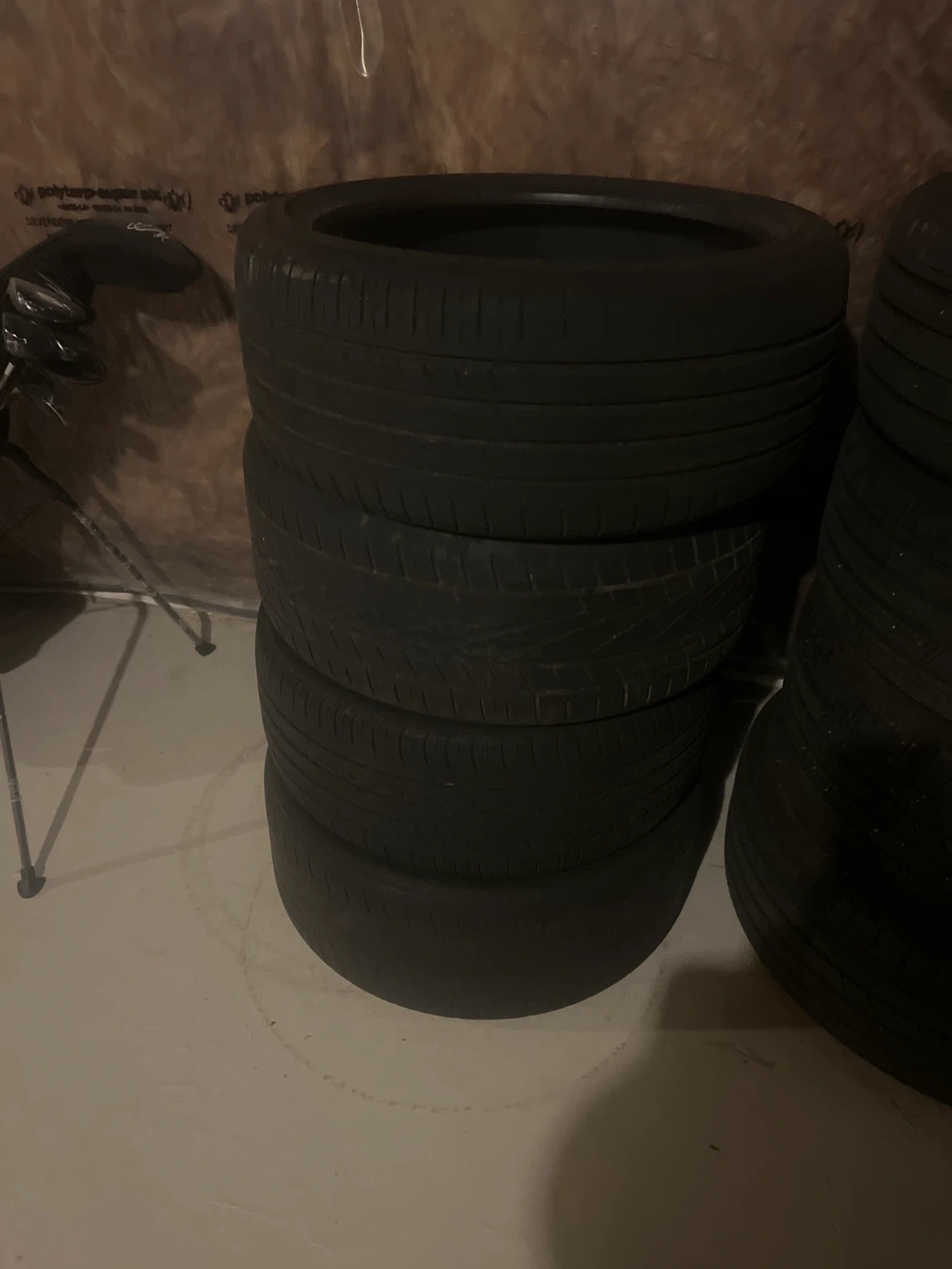 Selling a set of 5 tires. They appear to be performance tires with a size of 245/45 ZR18. Good for track days or spirited driving!