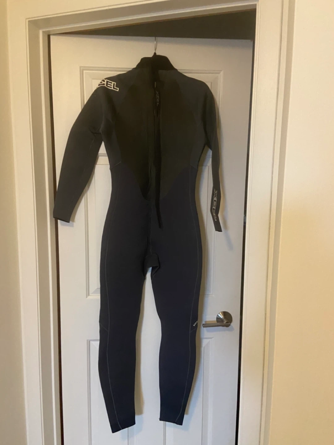 XCEL wetsuit with ultrastretch and bamboo lining. Back zip entry. Full length sleeves and legs. Size medium. Never worn