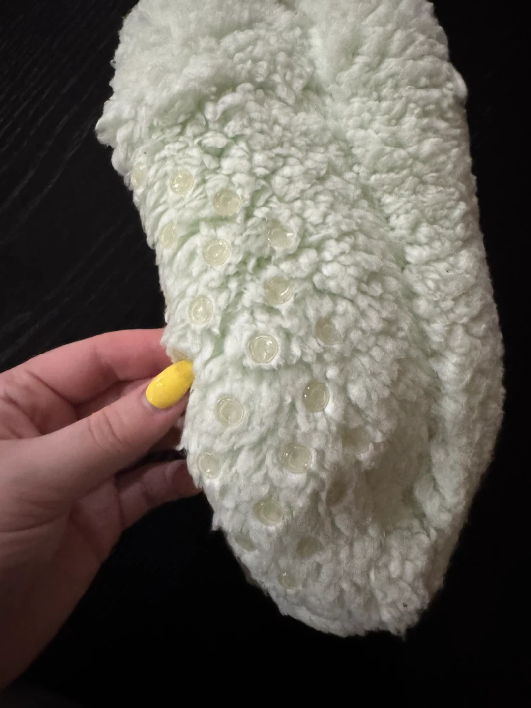 Cozy sherpa lined lounge socks for women. They're designed with non-skid soles for safety. The size fits women's shoe sizes 4-10.