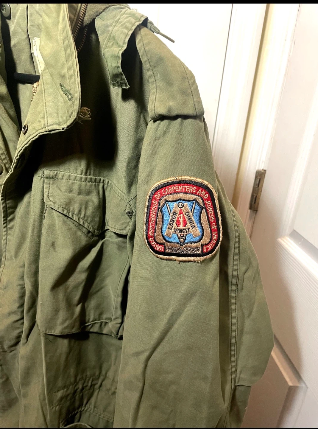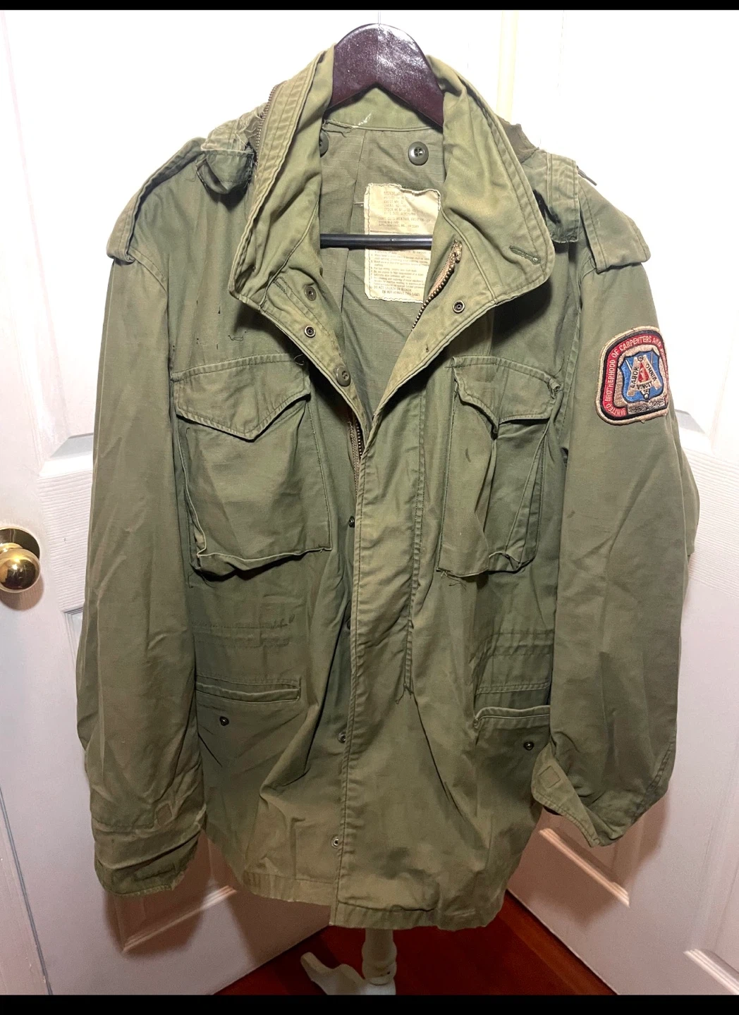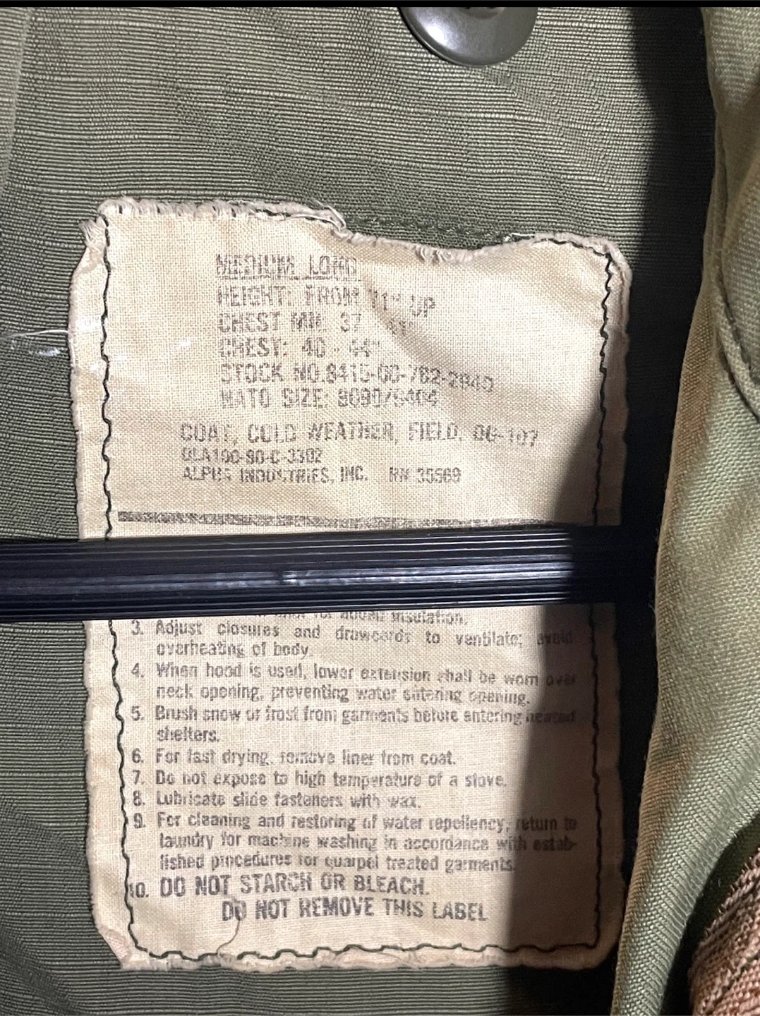 This is a vintage M-65 field coat by Alps Industries. It's a medium-long size in olive drab. The coat features multiple pockets and a removable liner. Made for cold weather field use.