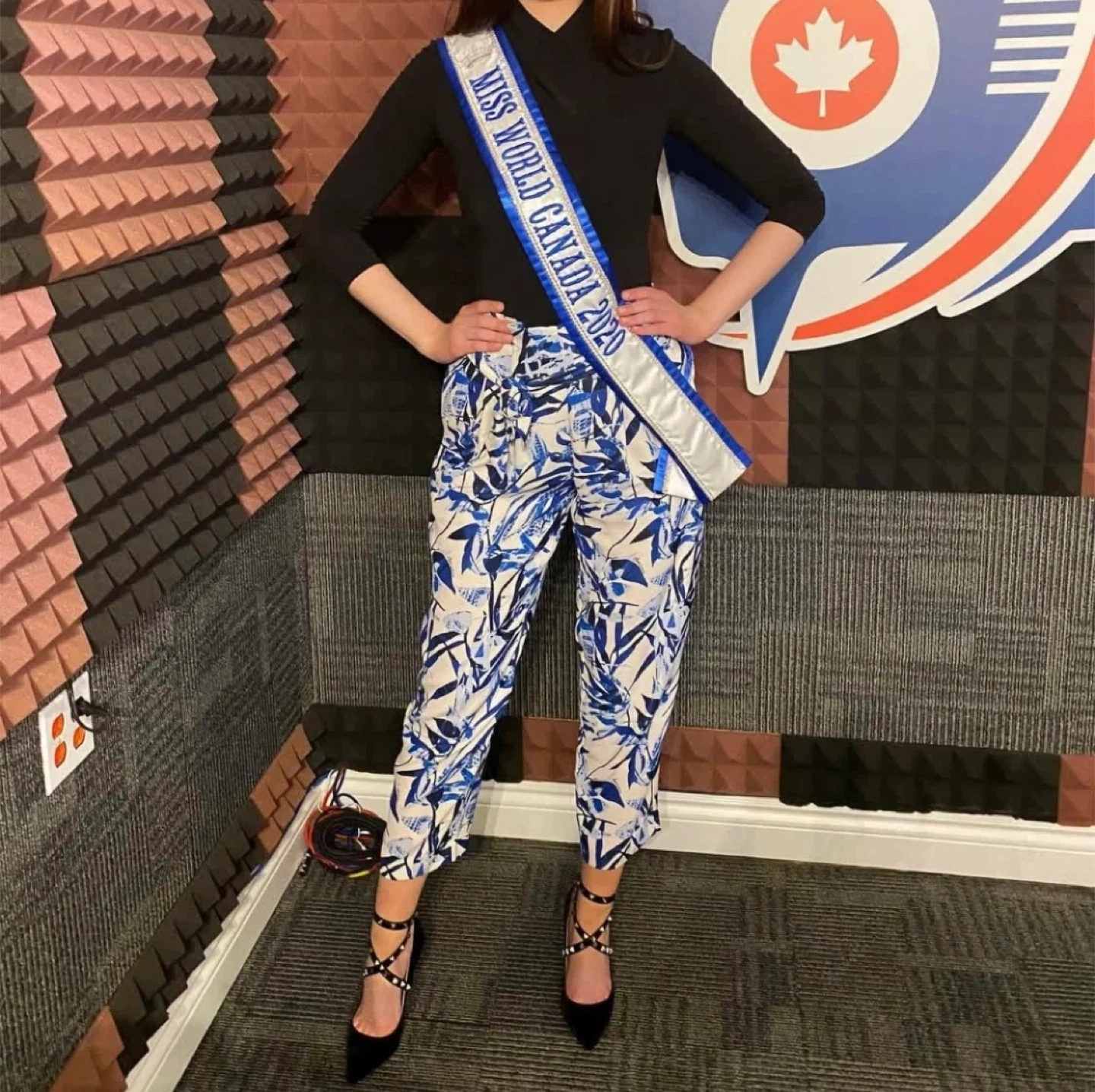 These stylish wide leg pants feature a blue and white leaf print. They have a high-waisted fit with a tie belt. Made from a lightweight fabric, they're perfect for warmer weather.