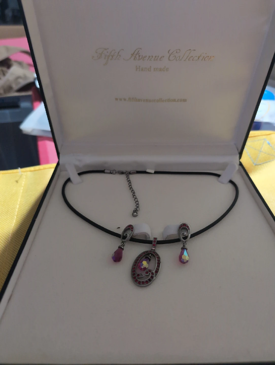 95Fifth Avenue Collection handmade necklace with red accents, comes in its original box! It's in great condition and ready for a new home