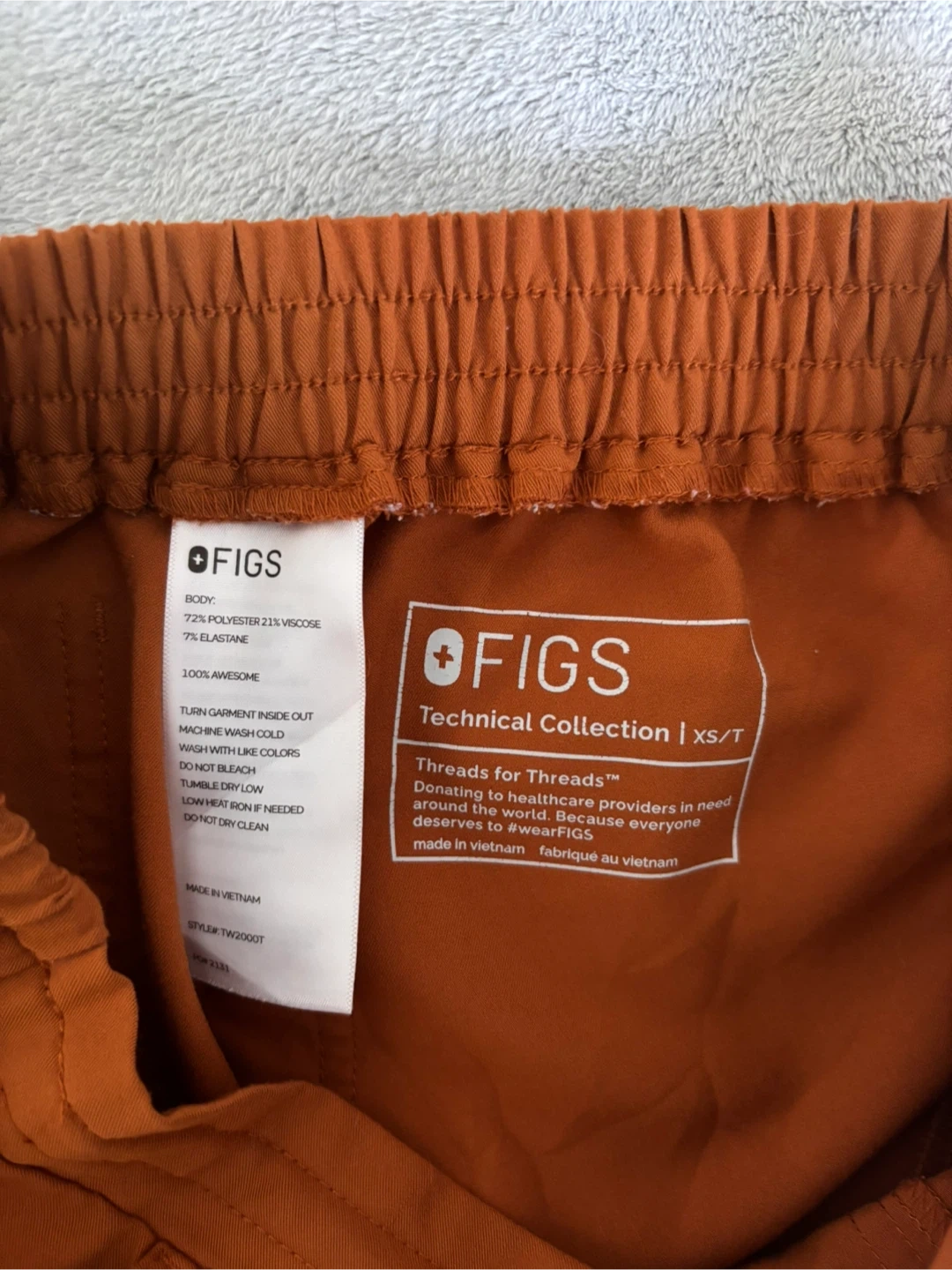 80Only worn once. Selling a pair of FIGS Technical Collection scrub pants in size XS/T. These are made of 72% polyester, 21% viscose, and 7% elastane. They're in great condition and ready for a new home!