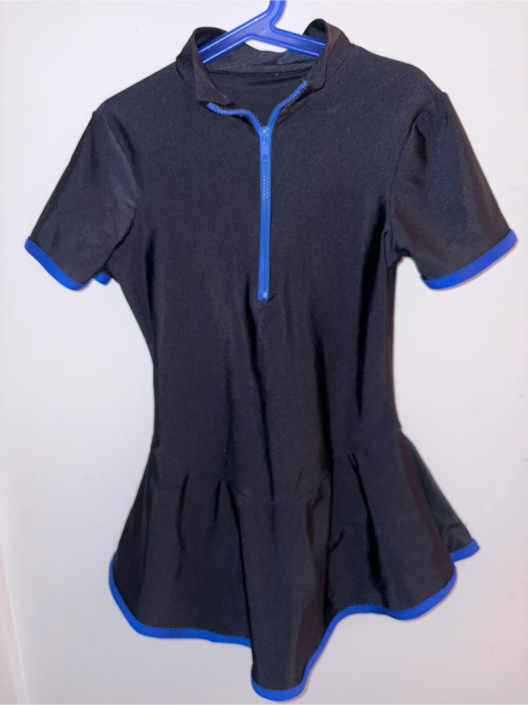 10From the Figure Skating Boutique, black with Royal Blue trim and zipper.