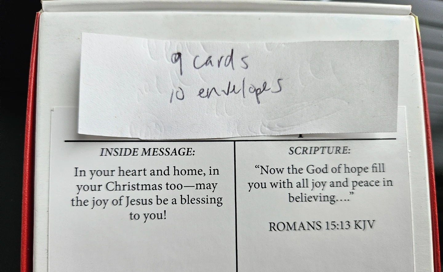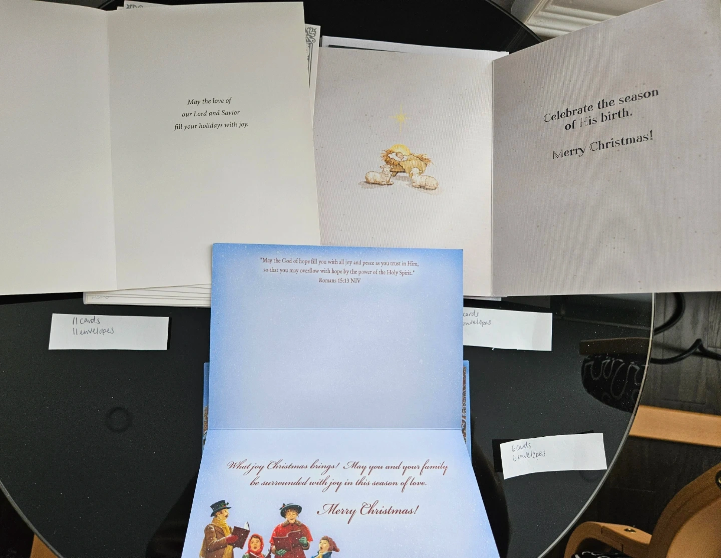 •A Christmas Prayer with church on front (11 cards, 11 envelopes) $7