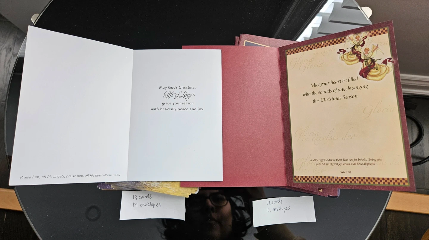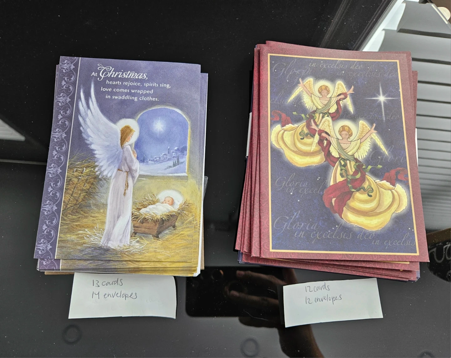 •Angel & baby Jesus in Manger (13 cards, 14 envelopes) $7