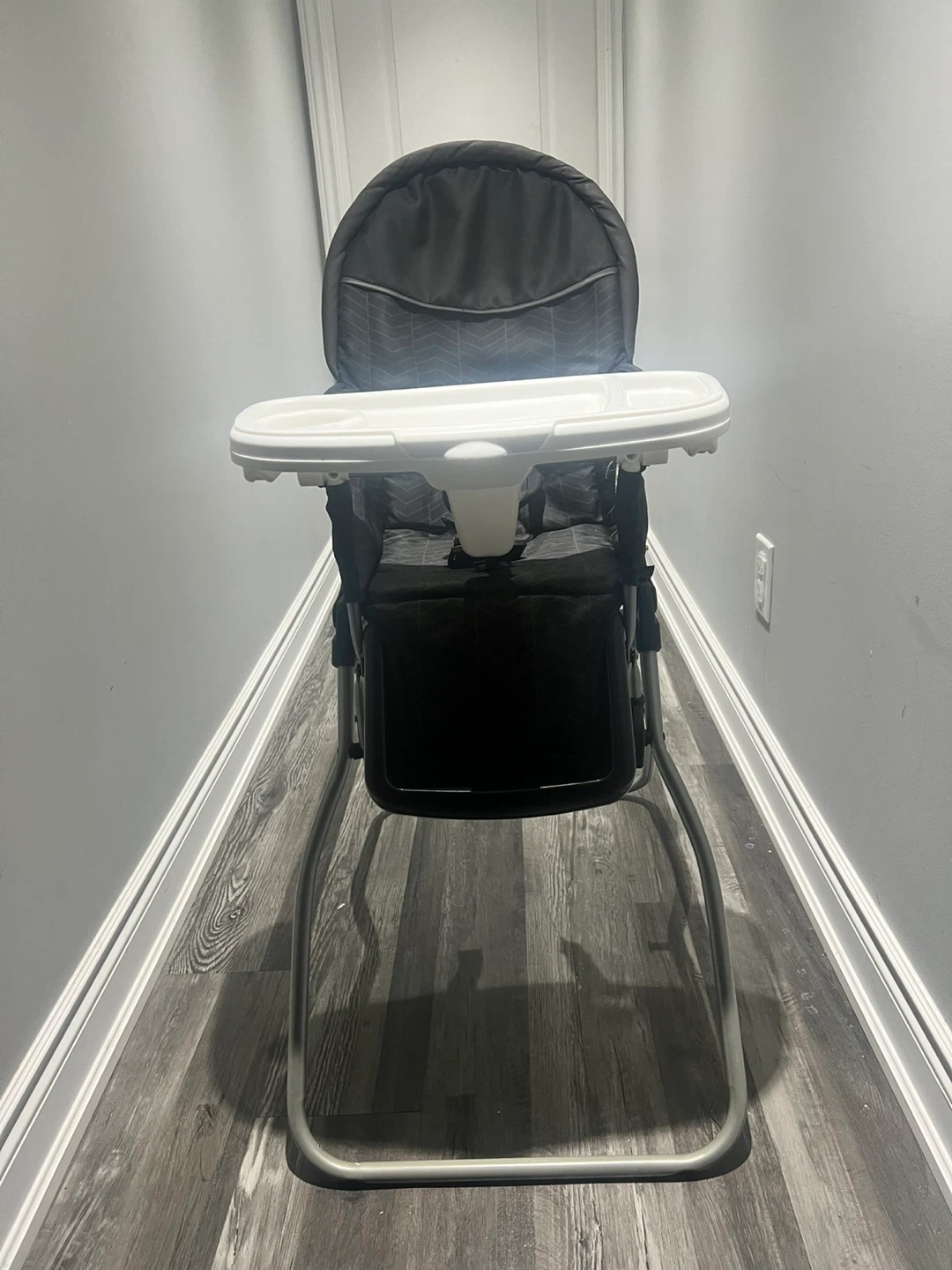In a good condition. Sturdy and comfortable high chair in excellent condition. Easy to clean with a removable tray and secure safety straps to keep your little one safe during mealtimes. Suitable for babies and toddlers. Used in a smoke-free, pet-free home. No stains or damage.