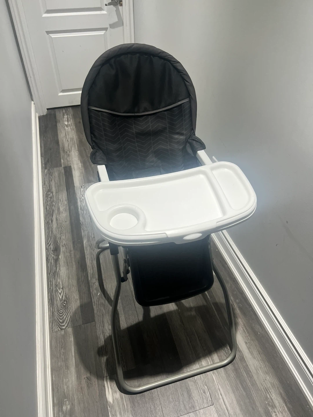 In a good condition. Sturdy and comfortable high chair in excellent condition. Easy to clean with a removable tray and secure safety straps to keep your little one safe during mealtimes. Suitable for babies and toddlers. Used in a smoke-free, pet-free home. No stains or damage.