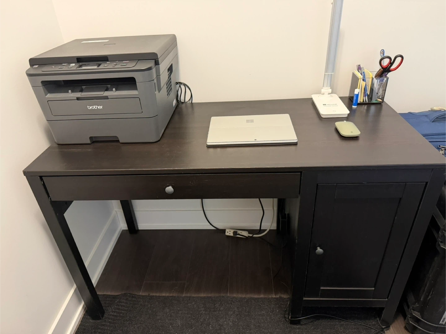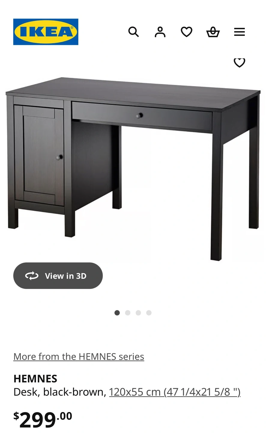 Stylish and sturdy HEMNES office/study desk in a black-brown finish. Perfect for studying, reading, drawing, or hobbies, and great for small spaces.
