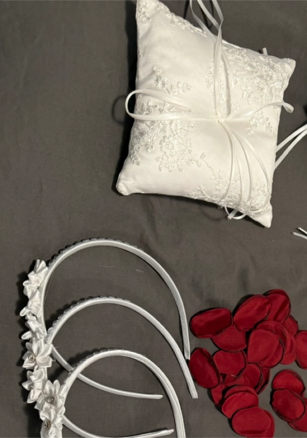 Wedding/Bachelorette: Headbands + petals + decor + pillow