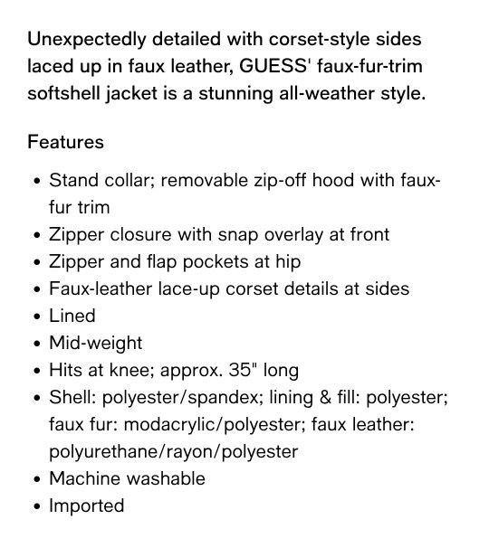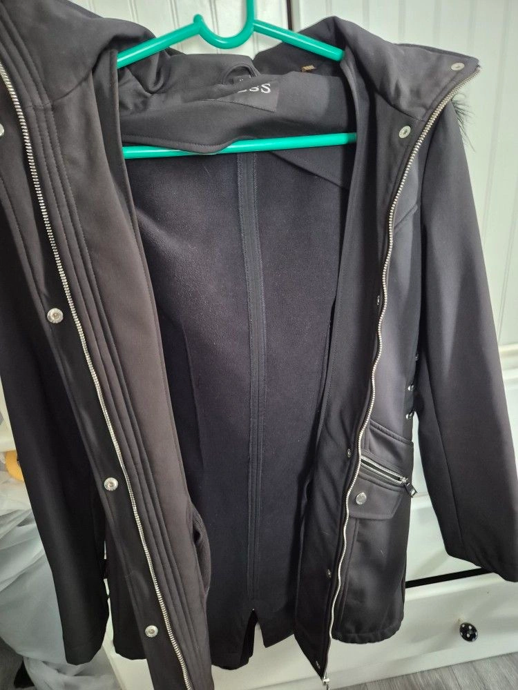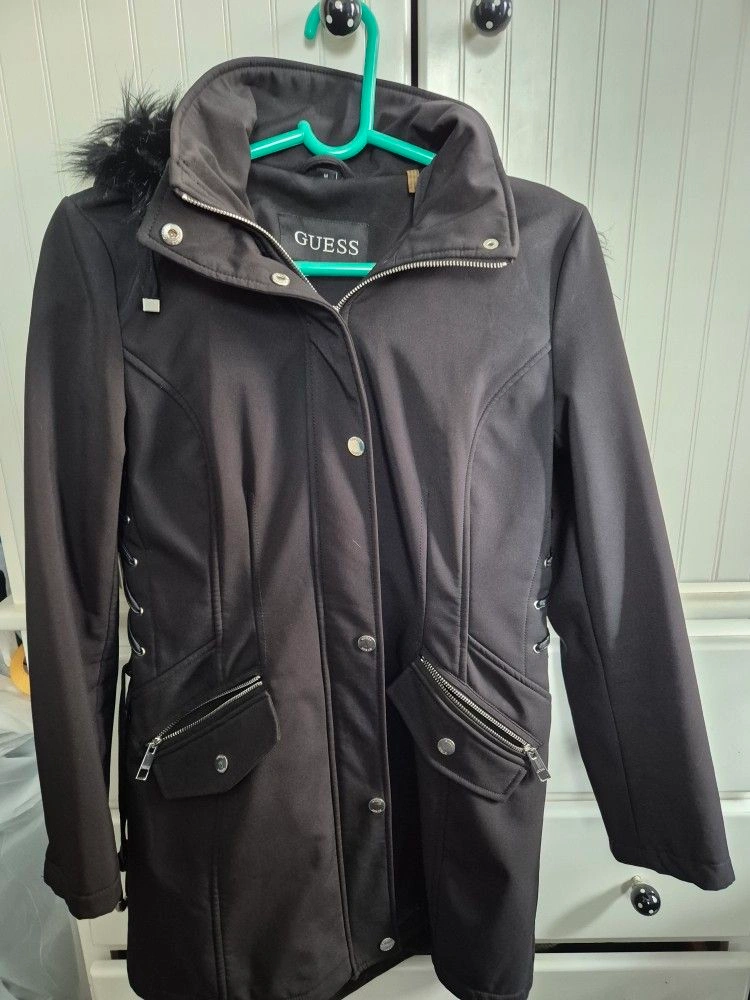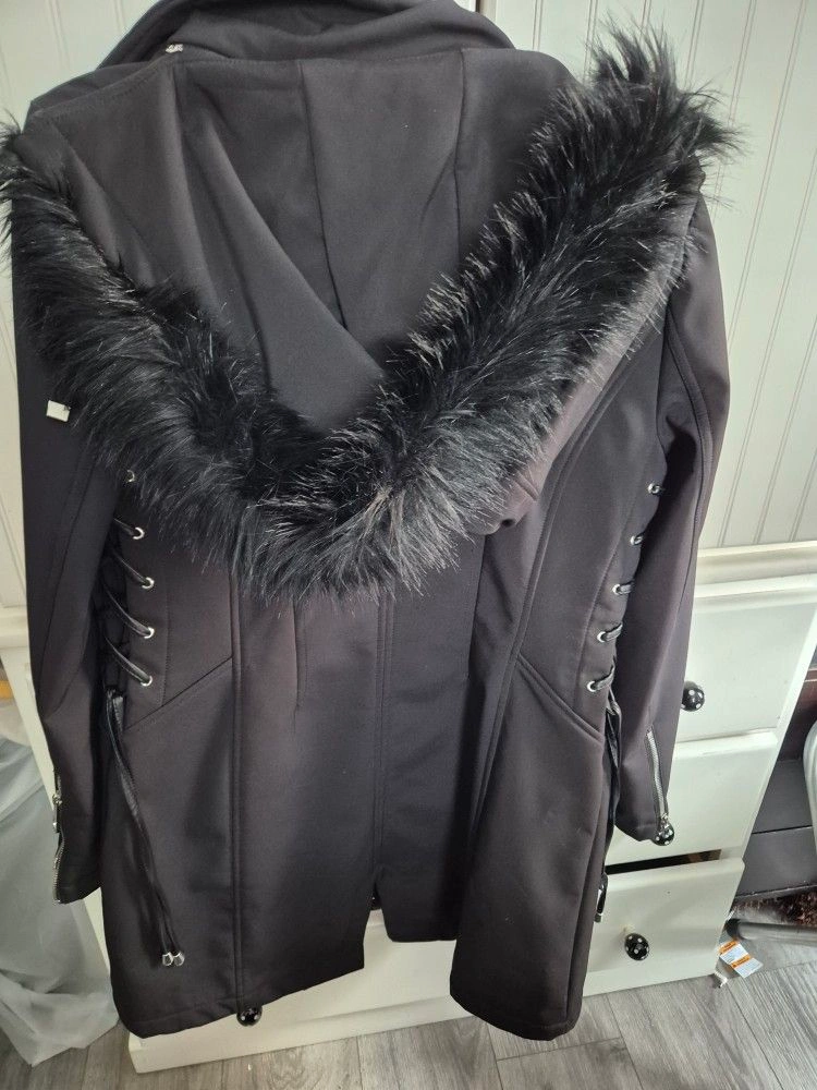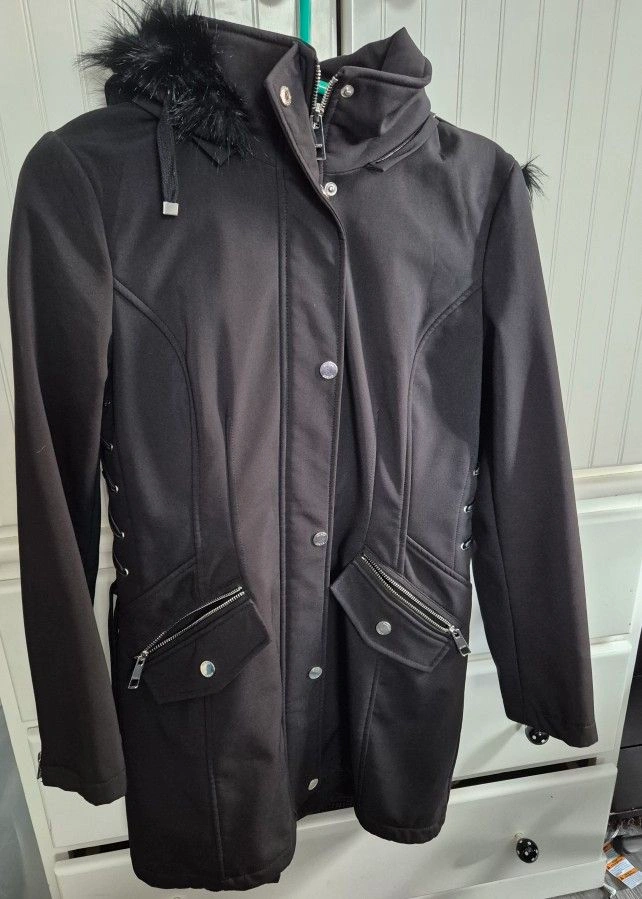 Guess Faux-Fur-Trim Lace-Up Coat/Parka Size M