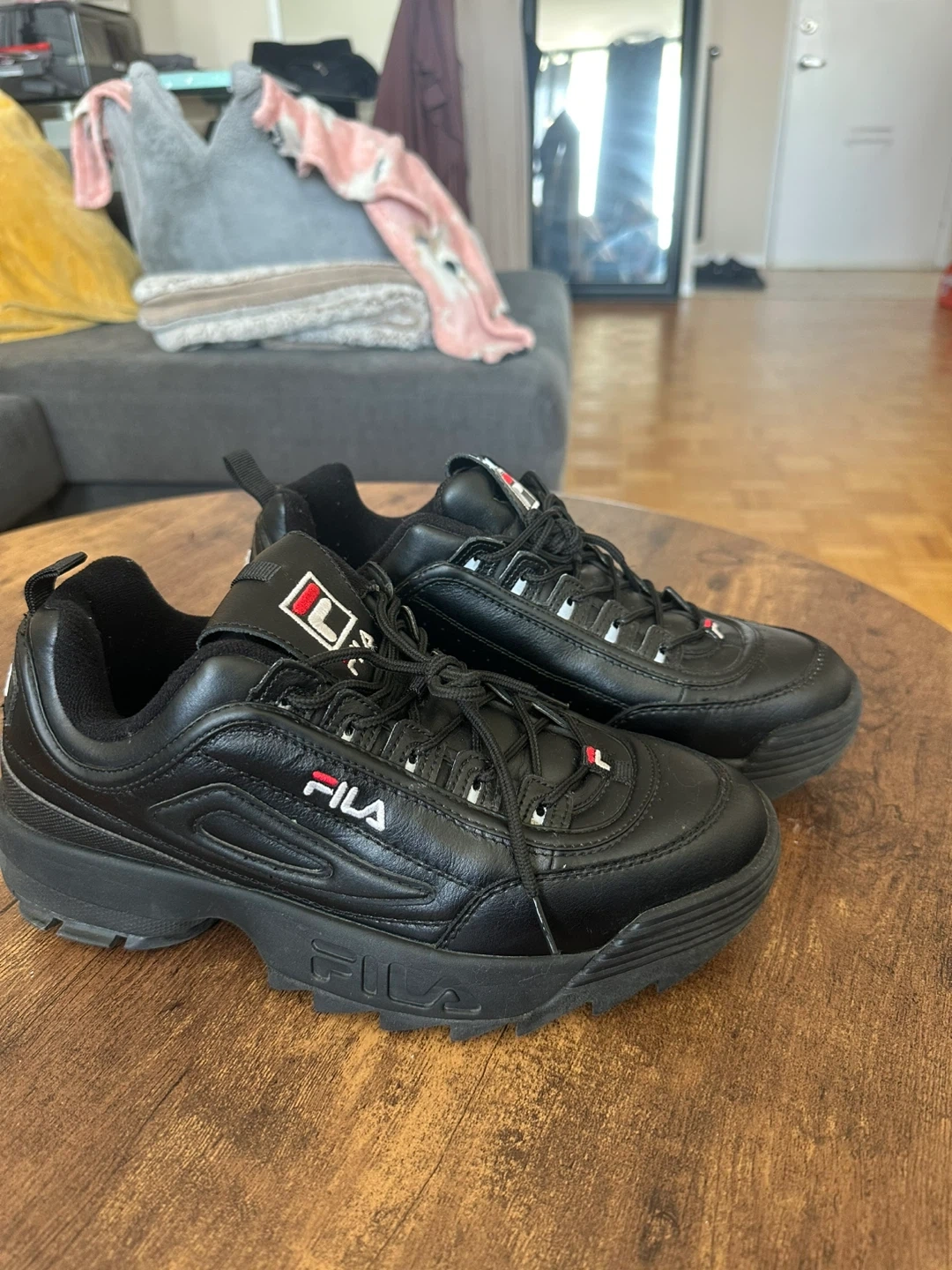 10Selling a pair of Fila Disruptor II sneakers in black. These shoes are in great condition and ready for a new home! They're super stylish and comfortable for everyday wear.