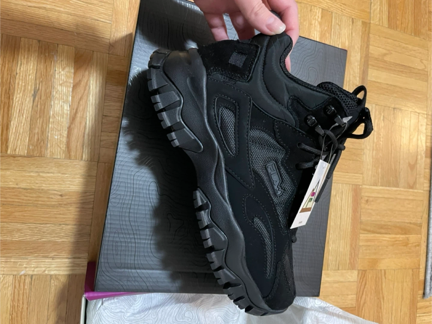 261Selling a pair of brand new Fila Explore hiking boots in all black! They come with the original box. Perfect for hitting the trails or just rocking a stylish look around town