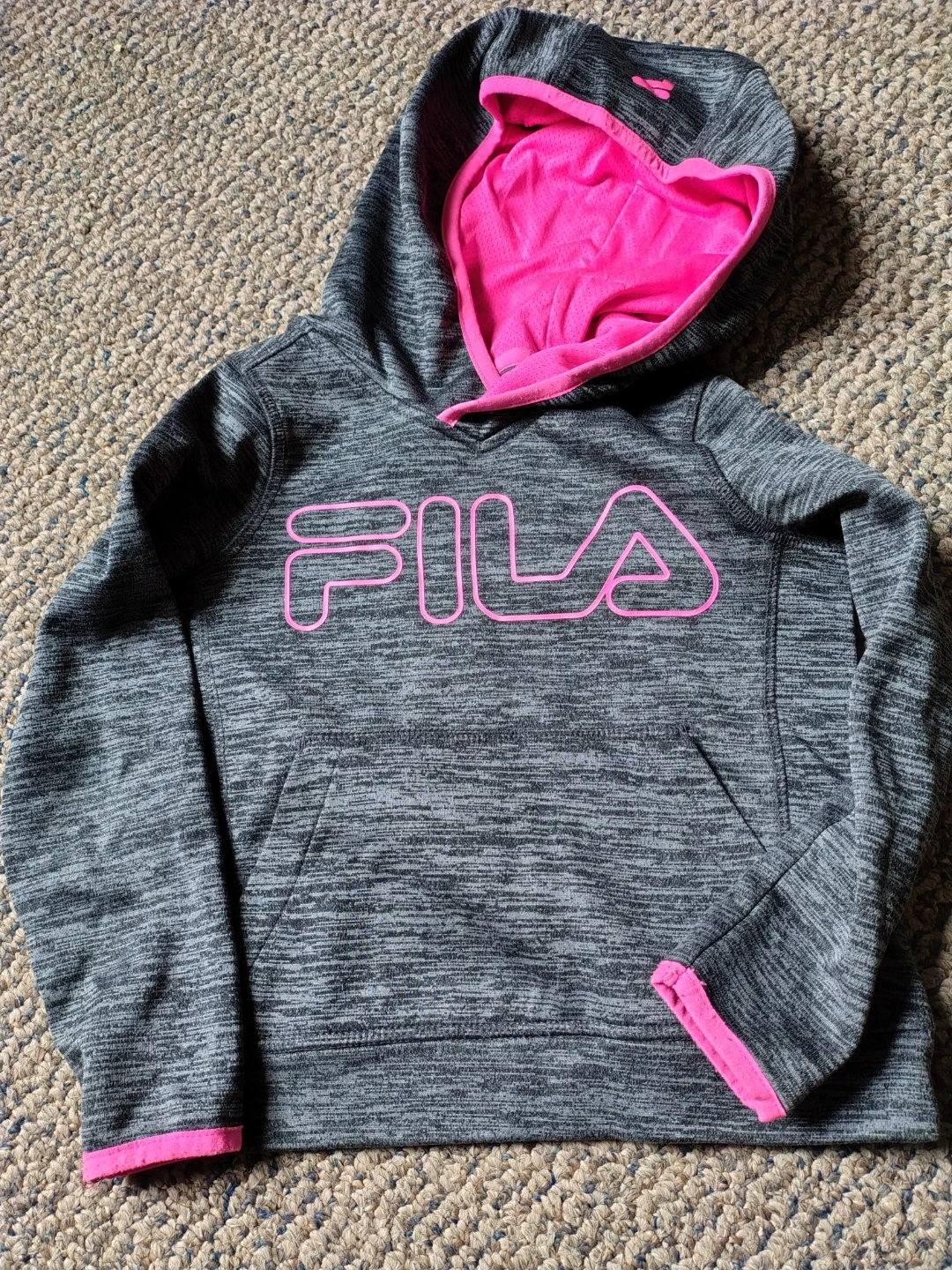 27Selling a Fila hoodie in size S (5/6). It's grey with a bright pink accent colour. Perfect for layering or wearing on its own!