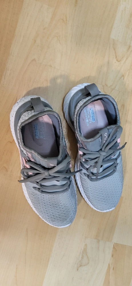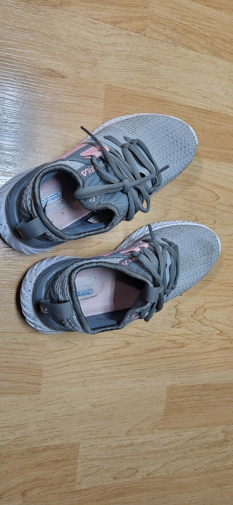 22Selling a pair of Fila women's running shoes! They are grey with pink accents and feature Memory Ultra Coolmax insoles for extra comfort. These shoes are perfect for running or everyday wear. They are in great condition and ready for a new home