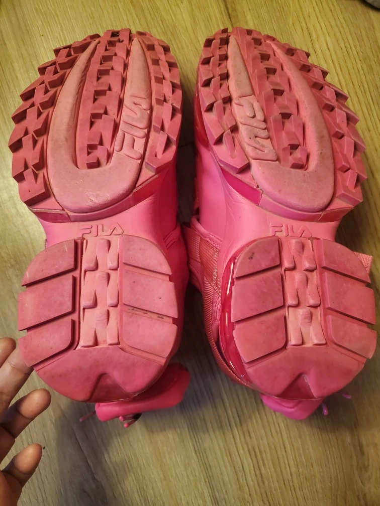 10Selling a pair of Fila Zapato training shoes in pink! They are in great condition and ready for a new home. The size is US 9.5. Made in China.Price negotiable.