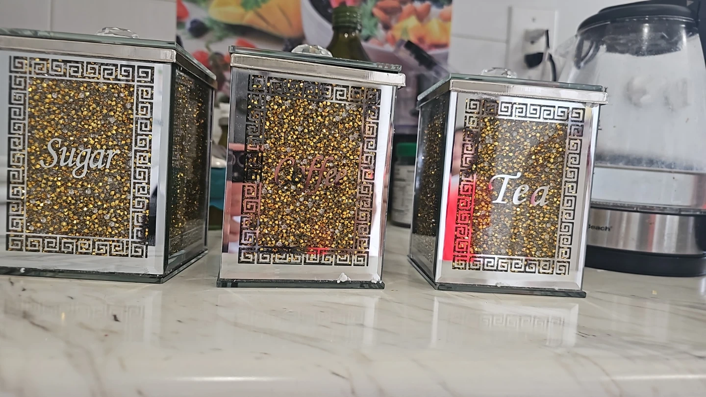 Sparkly Mirrored Canister Set - Sugar, Coffee, Tea