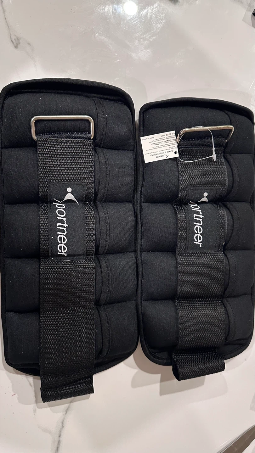 These Sportneer adjustable wrist and ankle weights are brand new in the box! They are 3.5 lbs each and made of neoprene fabric. The box includes a user manual with wearing instructions too