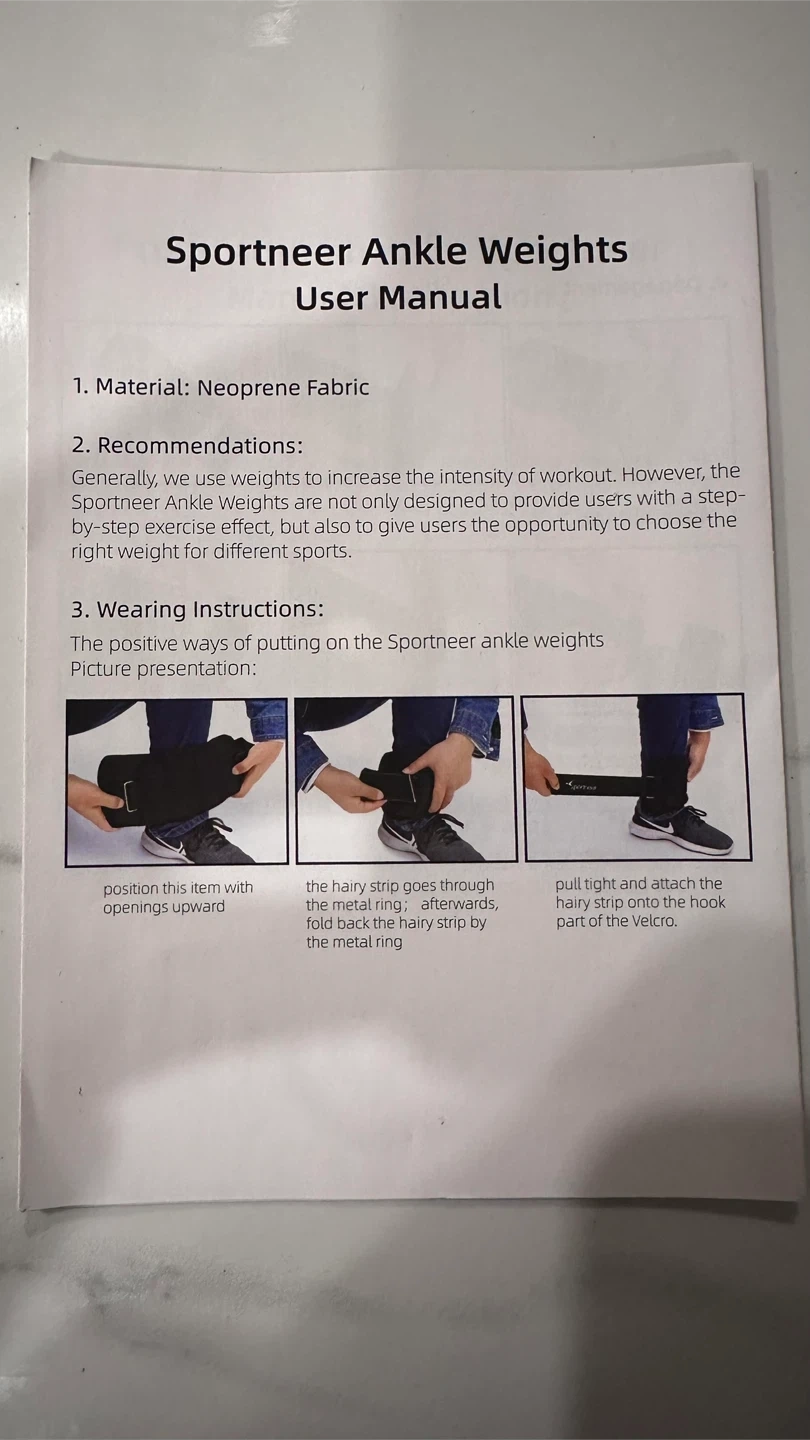 These Sportneer adjustable wrist and ankle weights are brand new in the box! They are 3.5 lbs each and made of neoprene fabric. The box includes a user manual with wearing instructions too