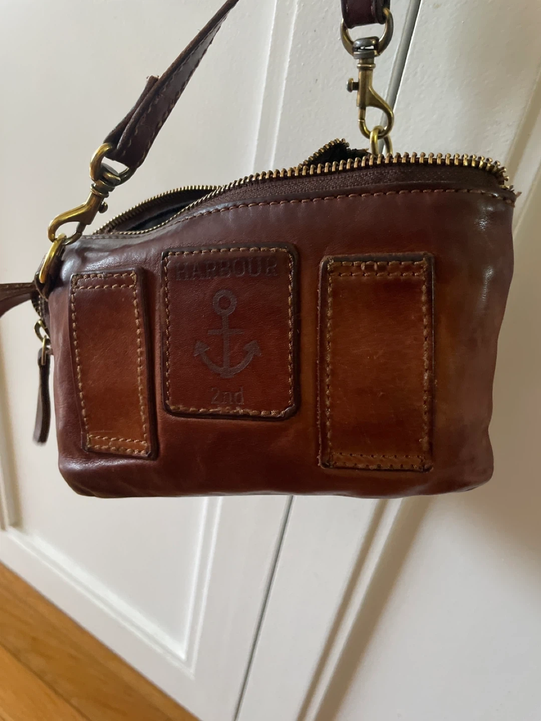 Selling a stylish HARBOUR brown leather crossbody bag. It's in great condition and perfect for everyday use! The leather has a beautiful, rich color, and the bag features multiple compartments for easy organization