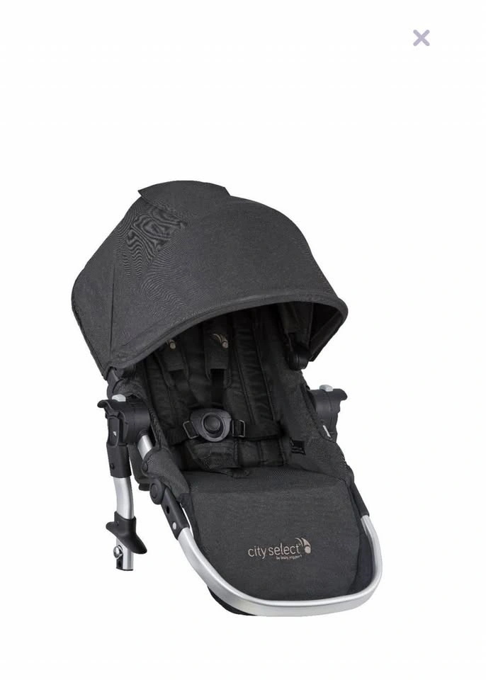 This 2017 City Select double stroller comes with a second seat, which is usually sold separately. It is compatible with various car seats. It has been in storage since 2019 and functions perfectly, just needing a good clean. A handlebar storage compartment accessory is also included.