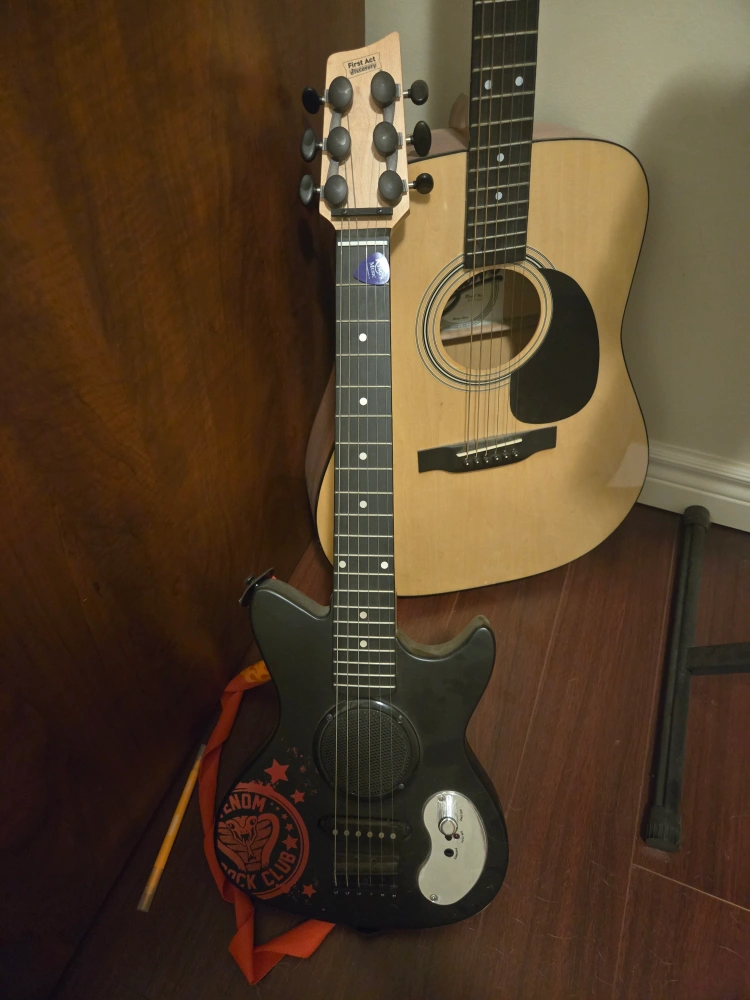 Selling a First Act Discovery electric guitar! It's black and in good condition. Perfect for a beginner who wants to rock out