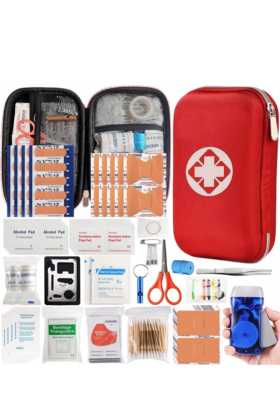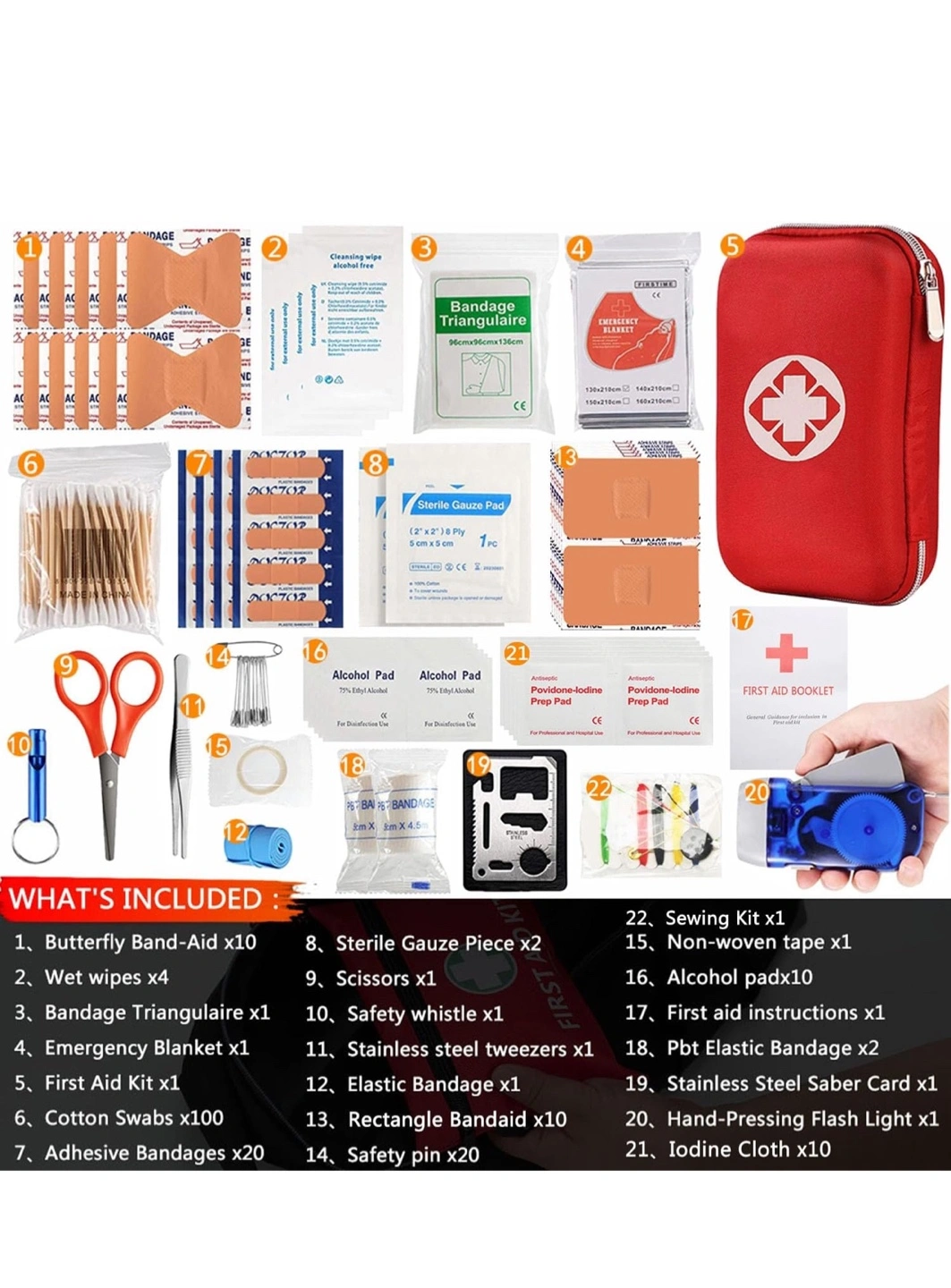 Brand New ►【VARIOUS USES】The first aid kit can be stored in your university, outdoor activities, kitchen, boating, camping, wilderness, road trip, fishing, hunting, mountain biking and hiking backpack, enough to deal with various emergencies Happening. ►【WATERPROOF AND MOISTUREPROOF】The first aid kit is made of waterproof material. The outer bag is waterproof, and the inner bag is waterproof, which can protect all internal items from moisture exceeding all standards of the first aid kit. ►【UNIVERSAL FIRST AID KIT】The first aid kit is equipped with various standardized and necessary tools, such as stainless steel tweezers, scissors, safety pins and various other first aid items. You can also add your own items at will, there is enough space to pack your own unique items. 【LIGHTWEIGHT AND PORTABLE】8.2 x 5.3 x 2.2 inches; Net Weight: 0.9 lbs, CHIOSHIO Upgraded First Aid Kit, equipped with multi-purpose emergency supplies. Complete First Aid Kit with Bright Red Bag, You can Quicky Find Everything You Need in Case of Any Emergency. A Must Have for Us! Also Great for A Gift! ►【TRUSTWORTHY】 We promise to make you satisfied and guaranteed with high-quality products. If you have any questions, please contact us directly and we will do the right thing. Trusted by families, lifeguards, students, nurses, doctors, construction workers, truck drivers and professional business offices.