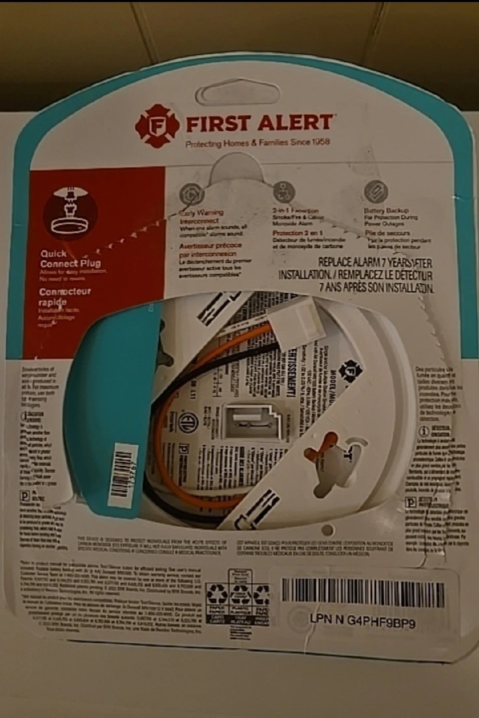10Selling a First Alert 2-in-1 smoke and carbon monoxide detector! It features a quick connect plug for easy installation. This wired detector provides early warning and has a 7-year lifespan after installation. Protect your home and family with this essential safety device