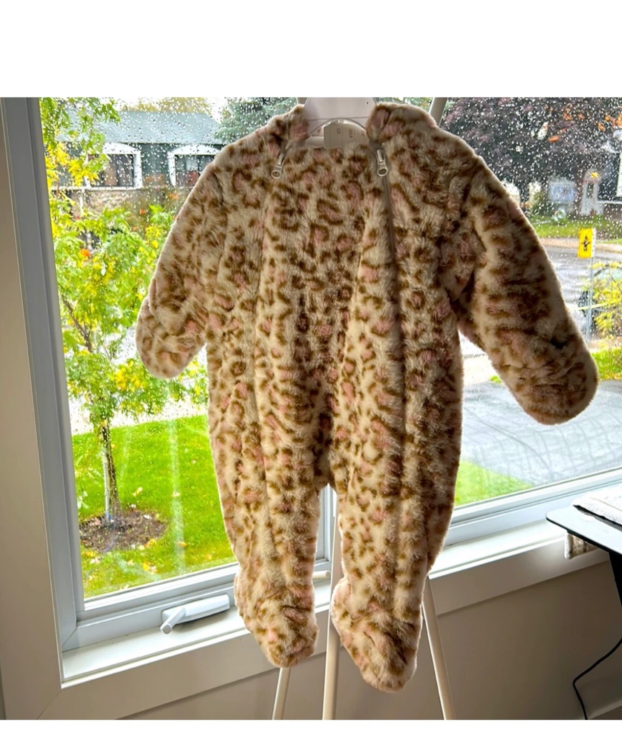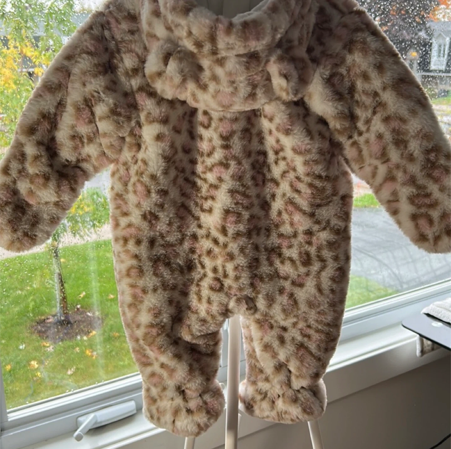 602A super cute and cozy snowsuit from First Wish! It's sized for babies 6-9 months and features a fun, furry pattern. Perfect for keeping your little one warm during the colder months