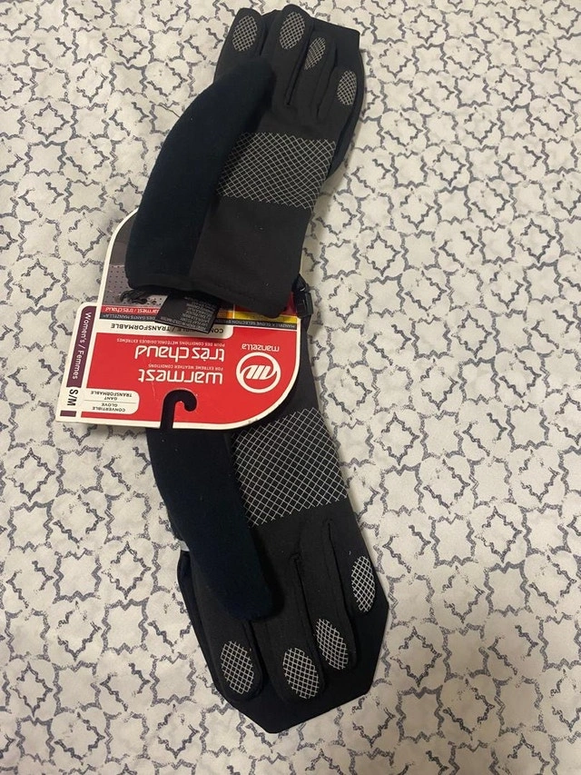 I'm selling a new pair of Manzella convertible gloves. These gloves are black, size small and convertible from a glove to a mitten. Price is $35. If the ad is up, the gloves are still available.