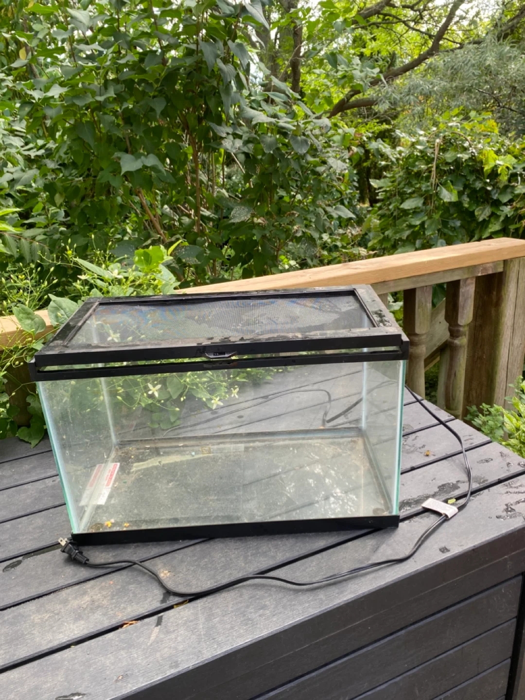 Selling a used fish tank. It comes with a lid and a power cord. Perfect for starting your aquarium!