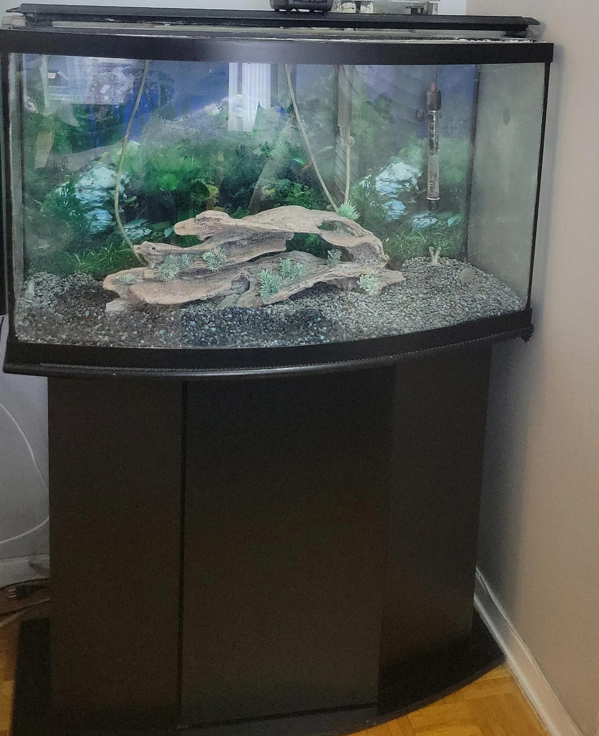 10Selling a fish tank with a stand. It comes as pictured with gravel and decorations. It's in good condition and ready for a new home!