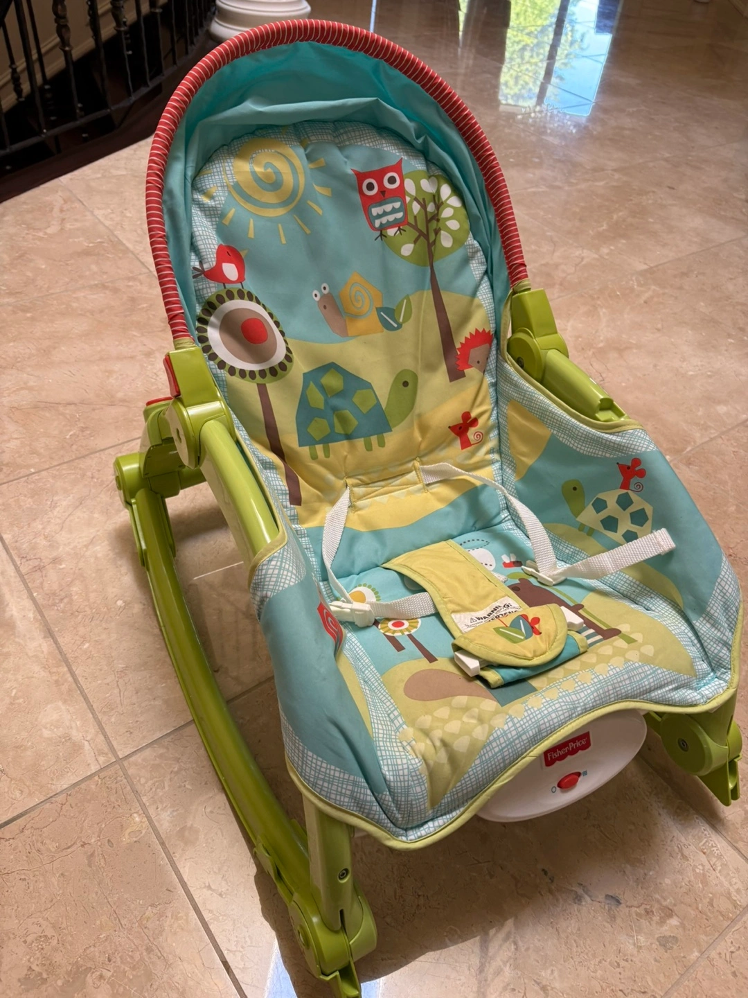 28✨ Fisher-Price Baby Rocker/Seat – Only $10! ✨ 👶 Brand: Fisher-Price (trusted quality for babies) 🌟 Gently used, clean, and in great condition 🪄 Soothing vibrations to help baby relax (battery required – not included) 🎨 Fun, colorful animal design that babies love 🪑 Can be used as a rocker or stationary seat 💲 Price: $10 cash only! Perfect for keeping your little one cozy and entertained. 📍 Pick-up in [Bayview & Finch] 📩 Message if interested – first come, first served!