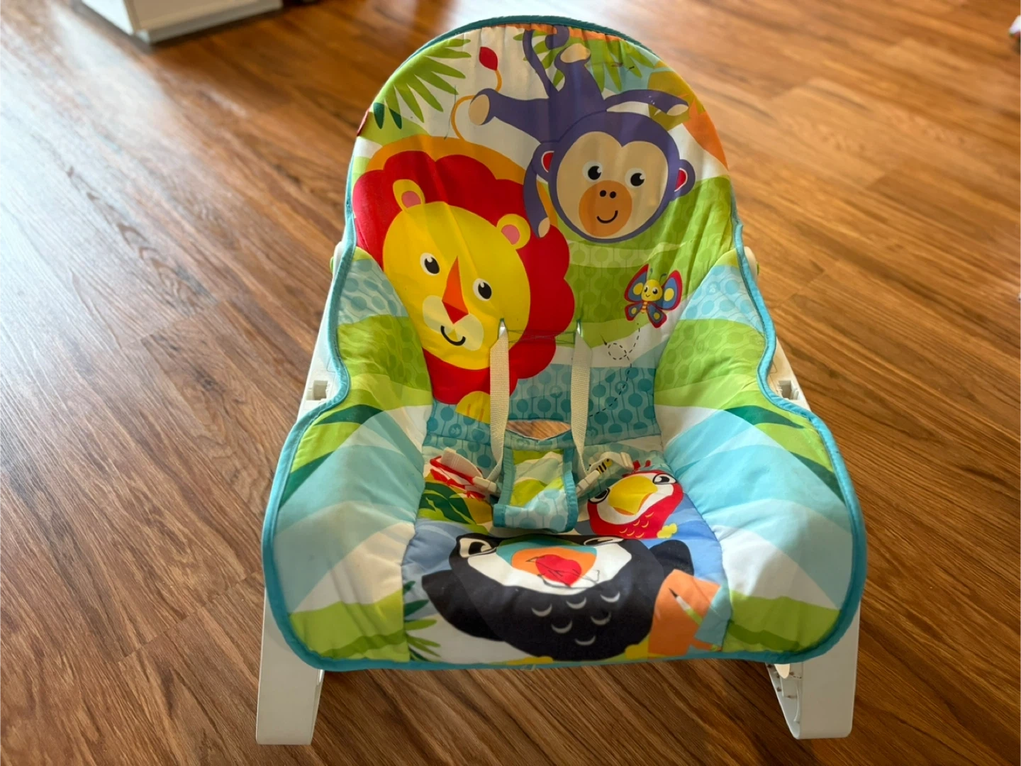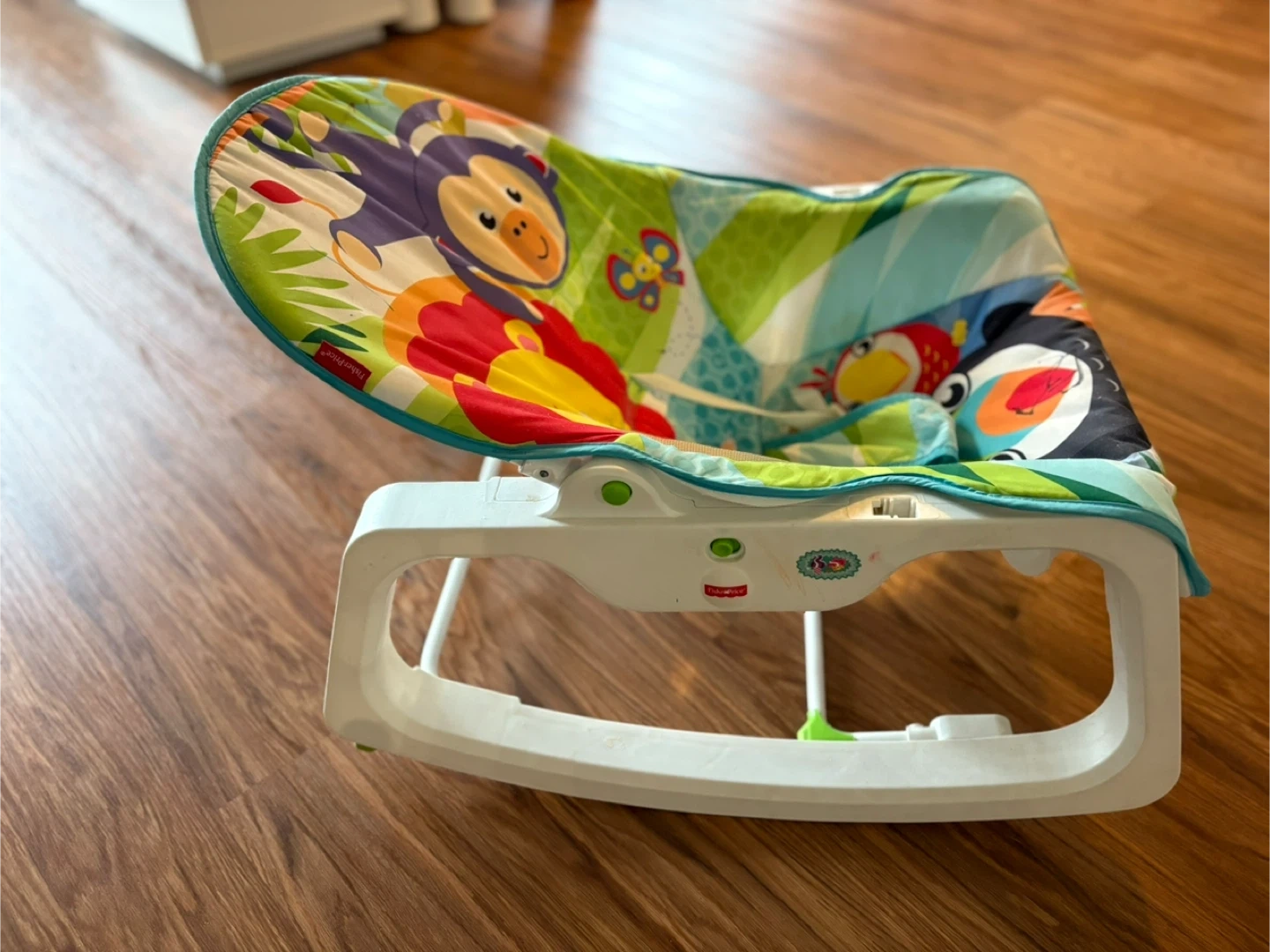 20This Fisher-Price baby bouncer is in good condition and ready for a new home! It features a colourful design with fun animal characters that your little one will love. Perfect for keeping baby entertained and comfy!