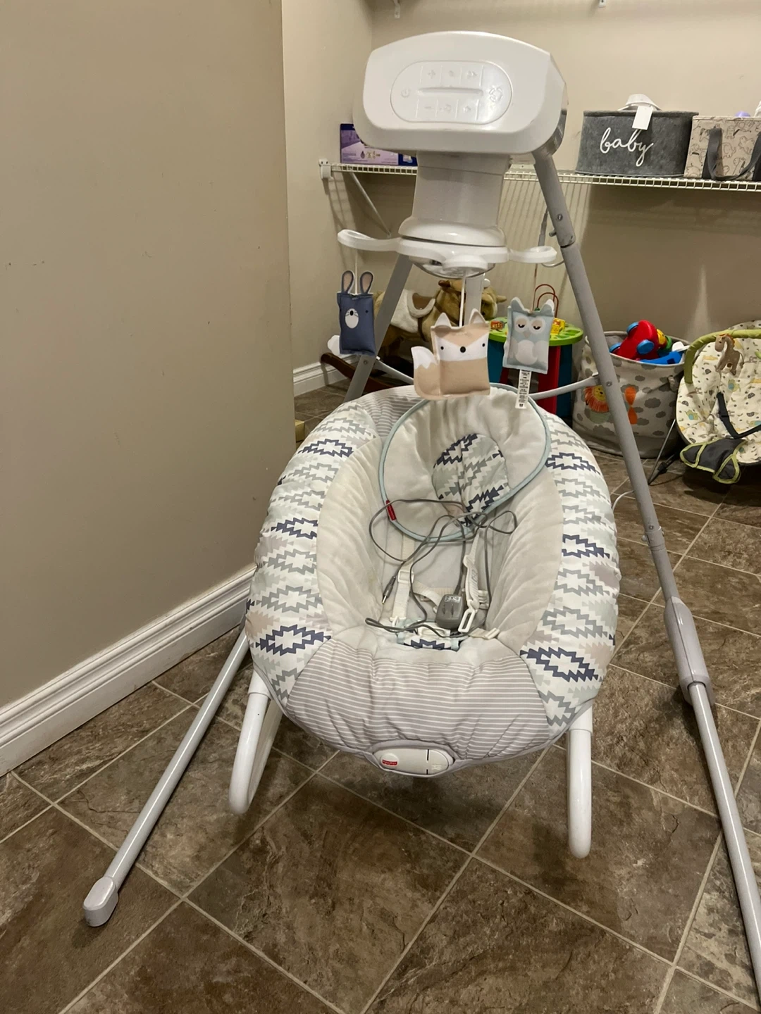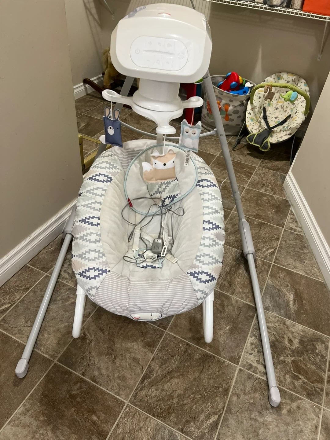 Selling a Fisher-Price Cradle 'n Swing. It has a dual motion feature that allows it to swing side-to-side or head-to-toe. The swing also has different speeds and sounds to soothe your little one. It's in great condition and ready for a new home!