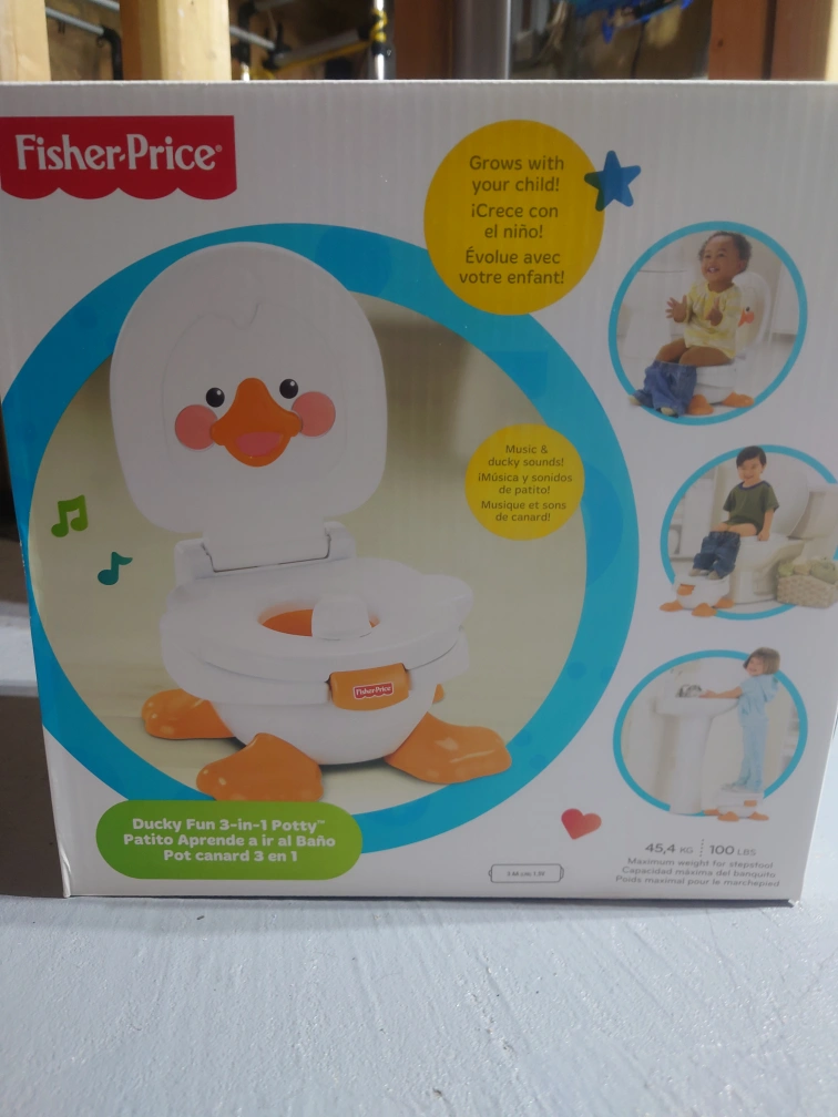 44Adorable ducky-shaped potty. Three-in-one design. Features an orange base and includes a removable bowl. Grows with your child.