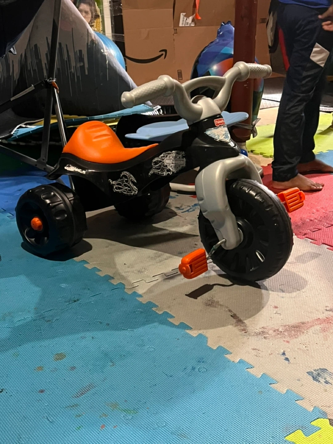 Here's a Fisher-Price Harley-Davidson Tough Trike! It's in good condition and ready for a new rider. This trike is perfect for little ones who are ready to explore the world on three wheels. It features a sturdy construction and cool Harley-Davidson styling! Pick up at hwy410 & heartlake