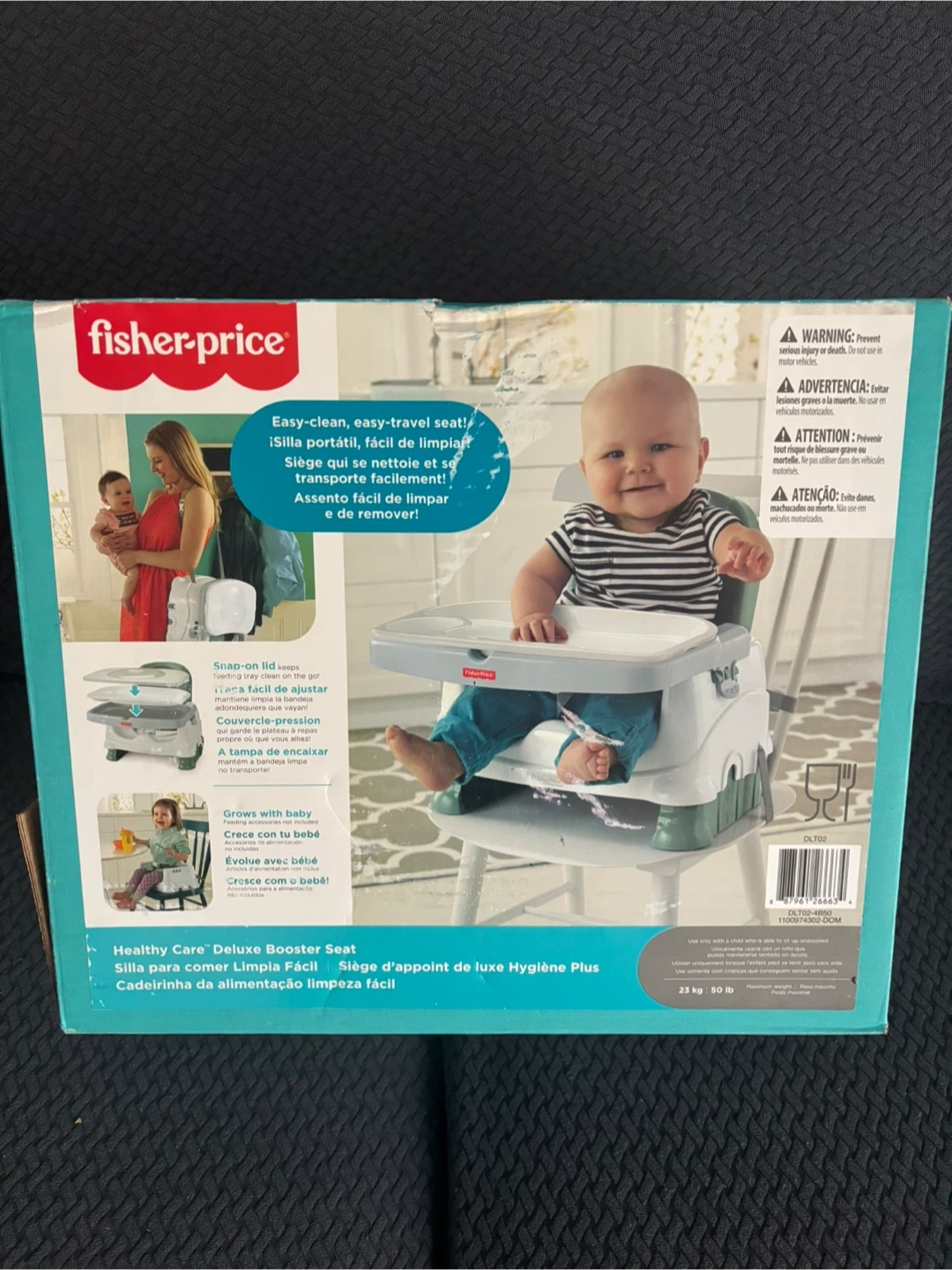 10Selling a Fisher-Price Healthy Care Deluxe Booster Seat. It's easy to clean and travel with, making meal times simpler wherever you are! The snap-on lid keeps the feeding tray clean on the go. It grows with your baby, adapting as they need it