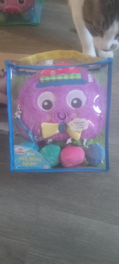 This Fisher-Price Itsy Bitsy Spider plush book is perfect for babies and toddlers! It's designed to be cuddled and listened to, featuring a special and playful melody. Suitable for ages 6+ months.