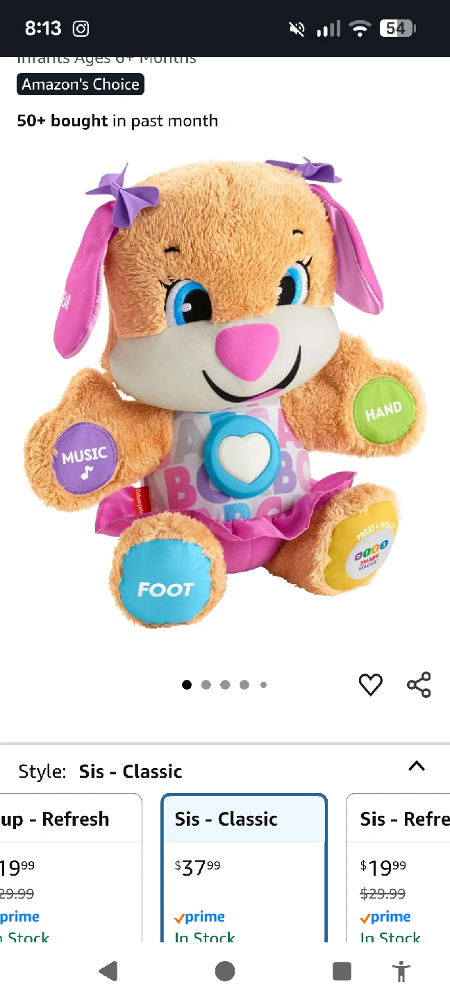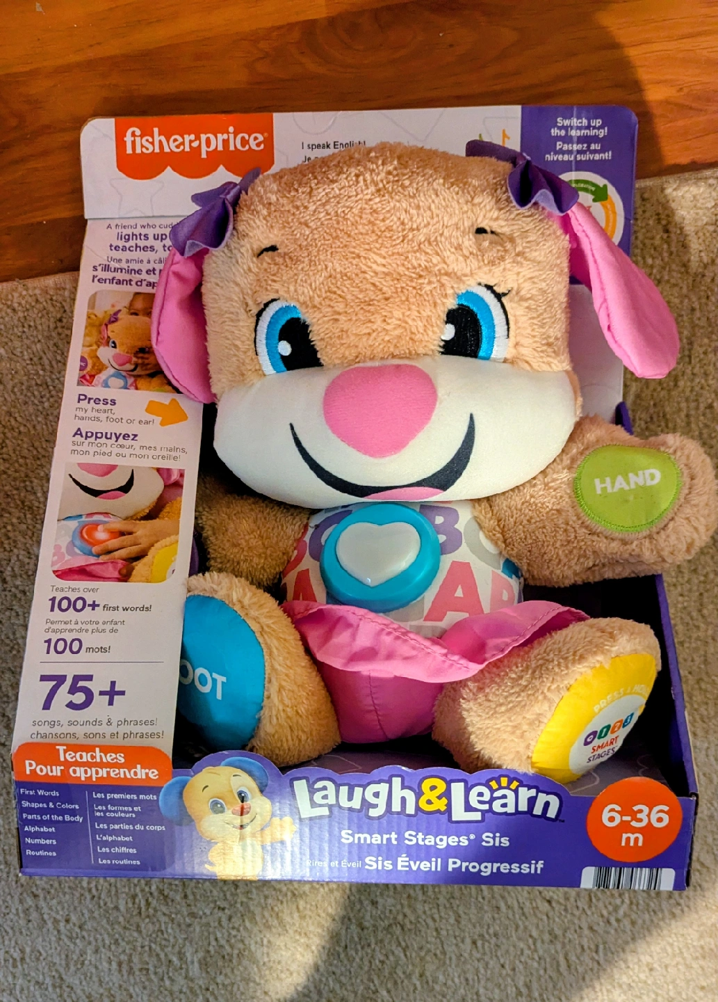 **Brand New in the Box** This adorable Fisher-Price Laugh & Learn Smart Stages Sis plush toy is perfect for little ones aged 6-36 months! It's in great condition and comes with the original box. Sis teaches over 100 first words, 75+ songs, sounds and phrases, and teaches shapes and colours. A friend who cuddles, lights up, and teaches! $37.99 at Amazon